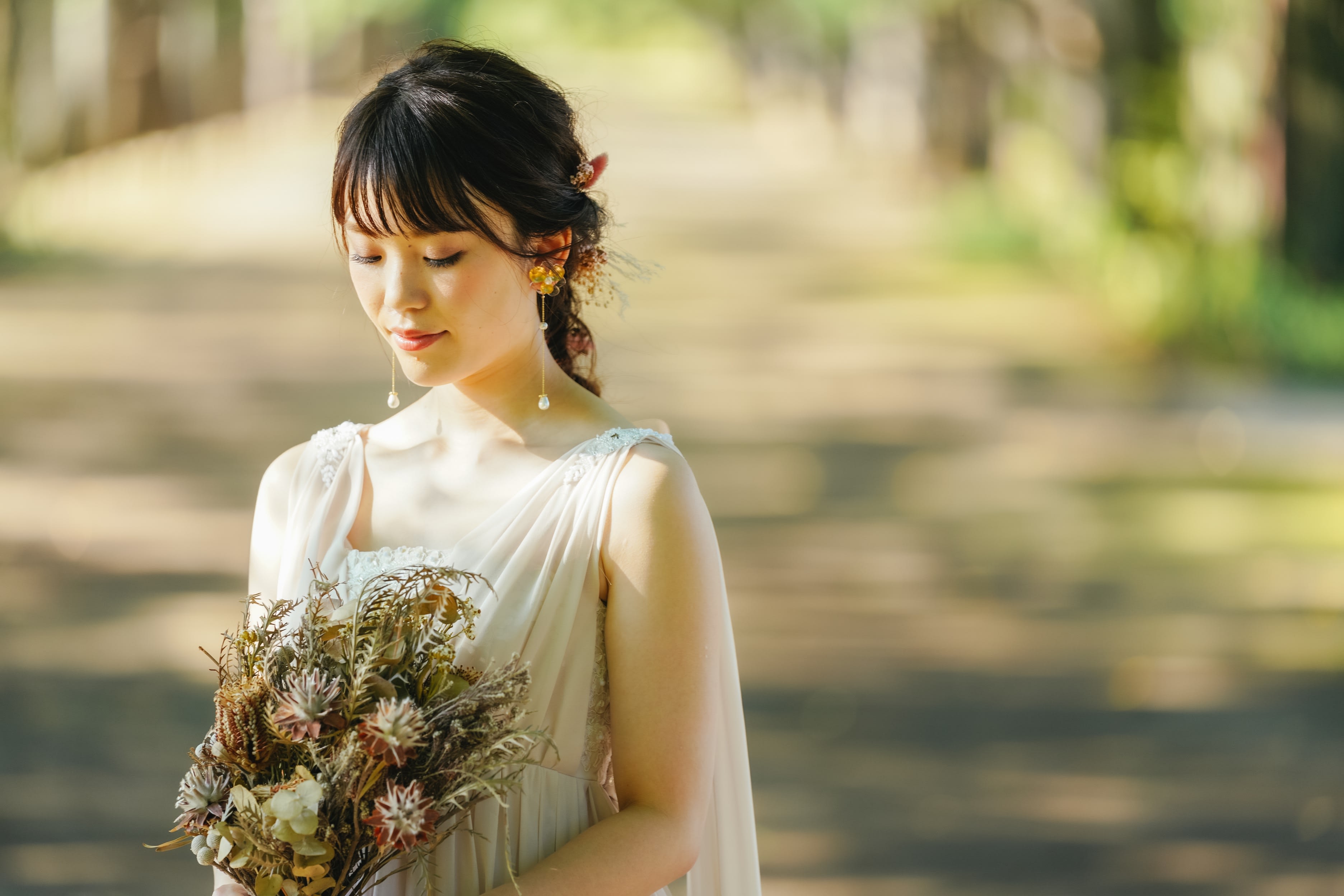 ❀大切な日に今までで一番輝けるように❀ 一生に一度のドレス選び、ヘアスタイル、メイク、ヘアアクセサリーetc迷うことだらけですよね お衣装選びからヘアメイク、着付けまでトータルバランスを見ながら色々ご提案させていただきます 若い方もどんな年代の方でも、一番落ち着く素敵なスタイルが必ずあります:D 何年経っても見返したくなるような、ずっと飾りたくなるようなお写真になるように楽しみながら一番似合うヘアメイクを見つけていきましょう❀ 何年後に見ても後悔のないゆるっとした大人キレイめスタイルが得意です ヘアメイク事務所に勤務、モデル撮影・挙式ヘアメイクを経て、渡米、Hawaiiでヘアメイクを5年経験後帰国し スタジオTVB京都店にて勤務 現在はスタジオAQUA新宿店に所属