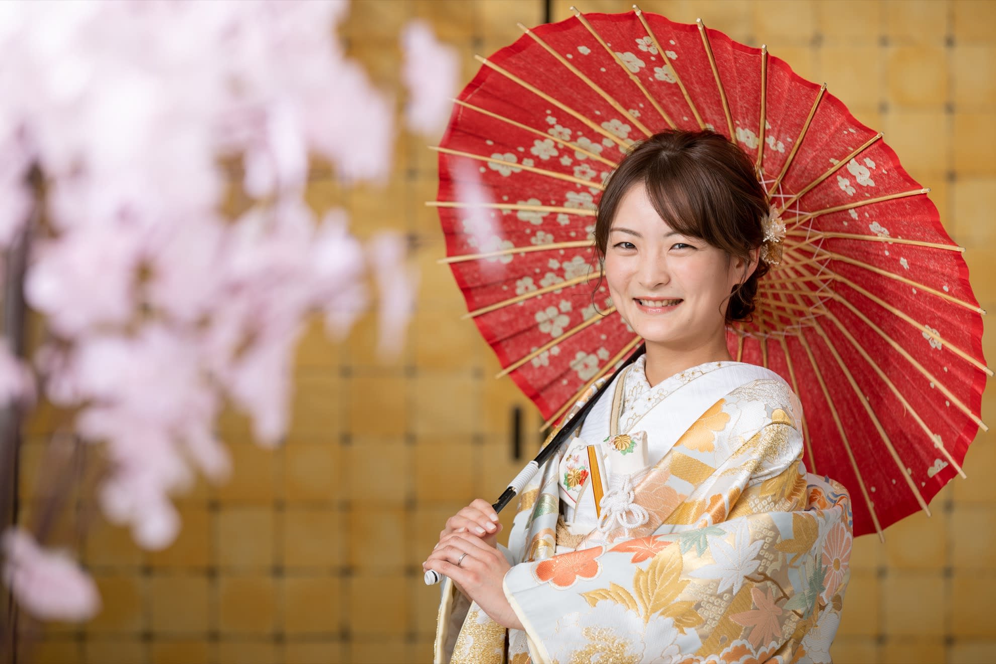 一面お花の壁が登場! 洋館風の立川店スタジオで撮影する洋装ウェディングフォトプラン