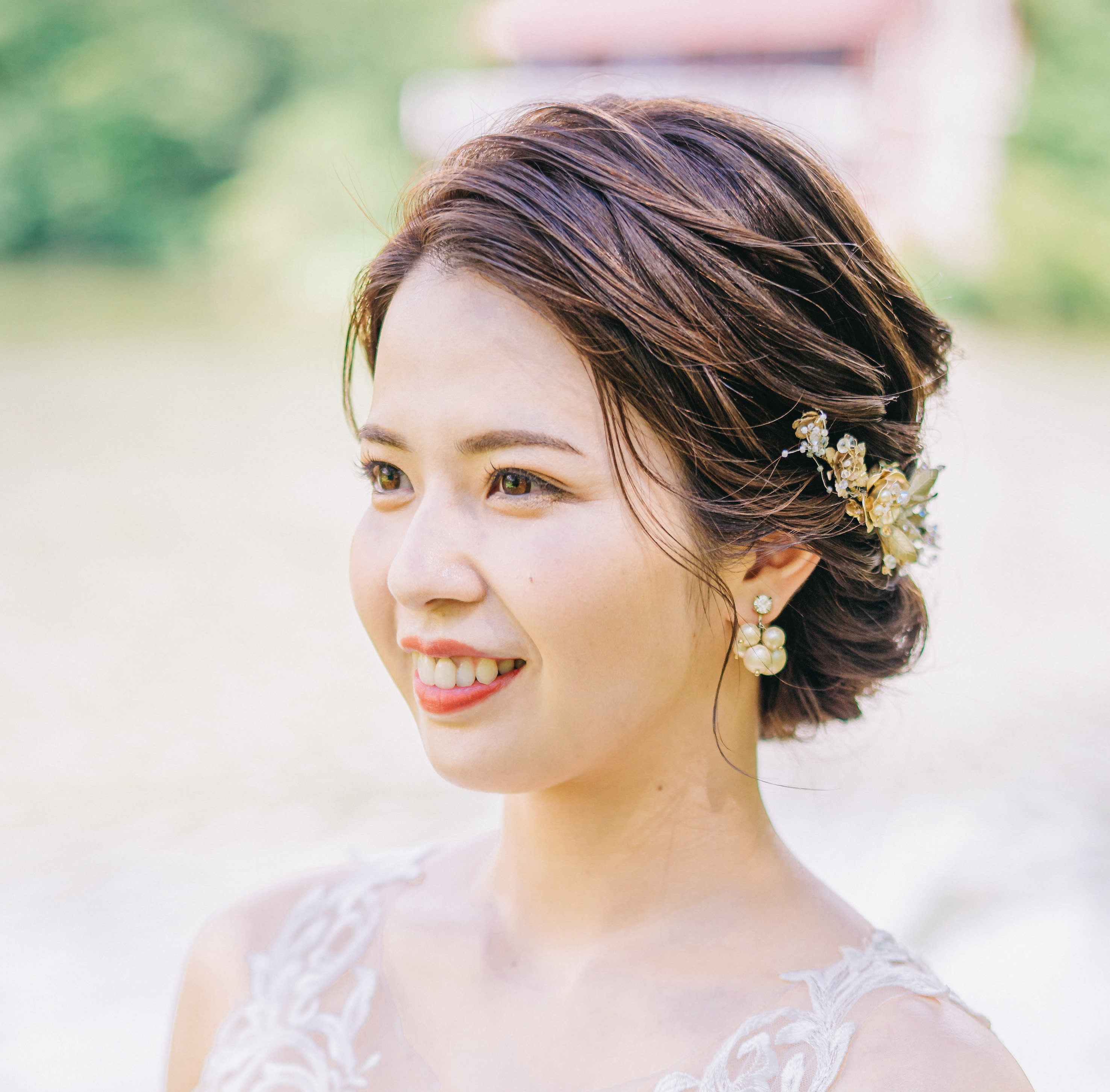 花嫁様の表情がより綺麗に輝くように、 リラックスして過ごして頂けるように。 お2人の幸せが画面いっぱいに伝わるよう 丁寧にお支度させて頂きます! 特にフェミニンな雰囲気の ヘアメイク、コーディネイトが得意です。 大切な瞬間を、とびきり素敵に残しましょう!!