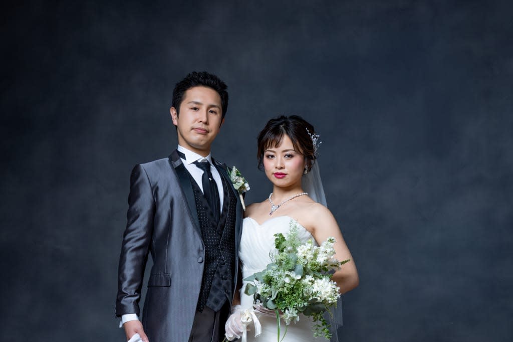 一面お花の壁が登場! 洋館風の立川店スタジオで撮影する洋装ウェディングフォトプラン