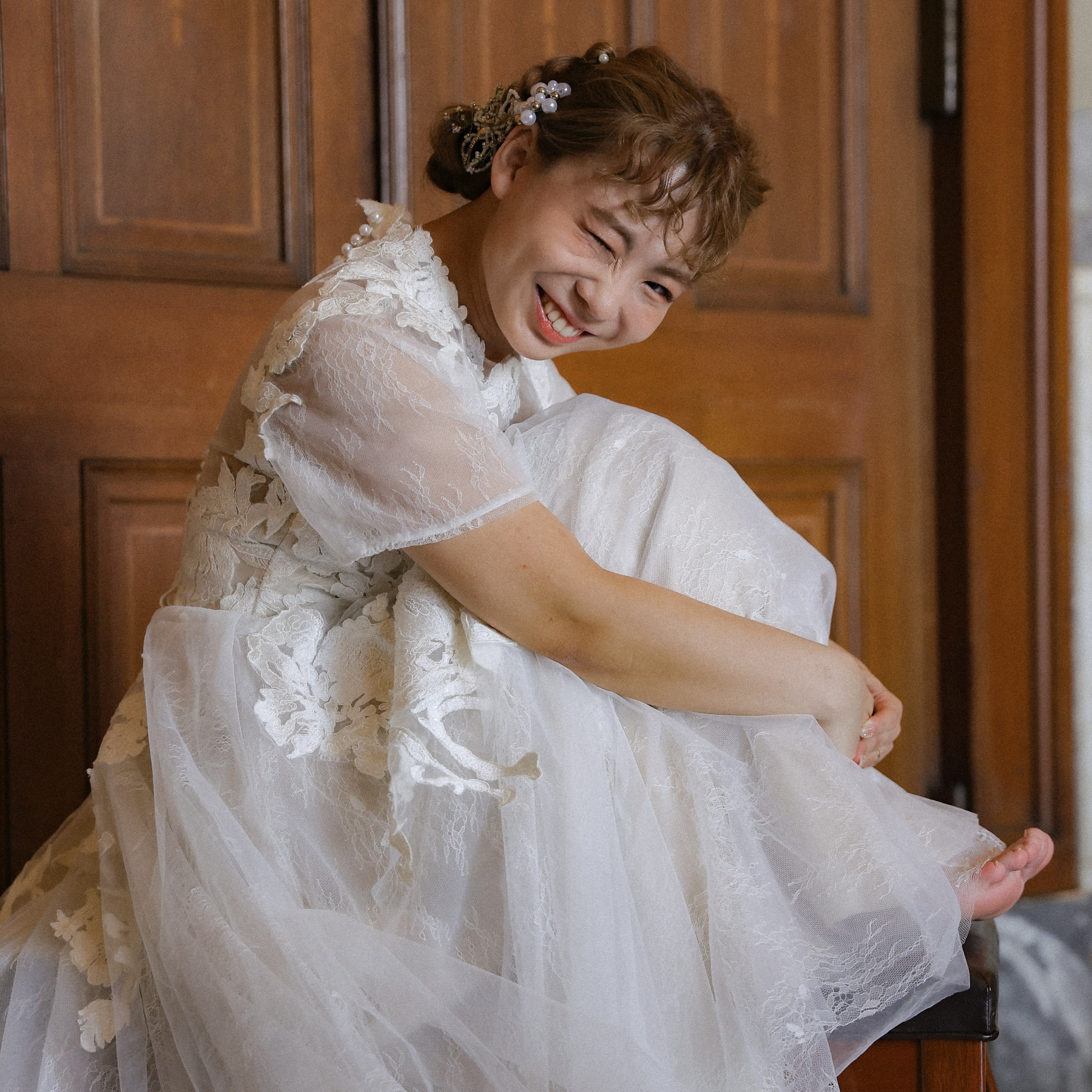 シンプルな背景で、おふたりの幸せな表情を主役にした一枚を
