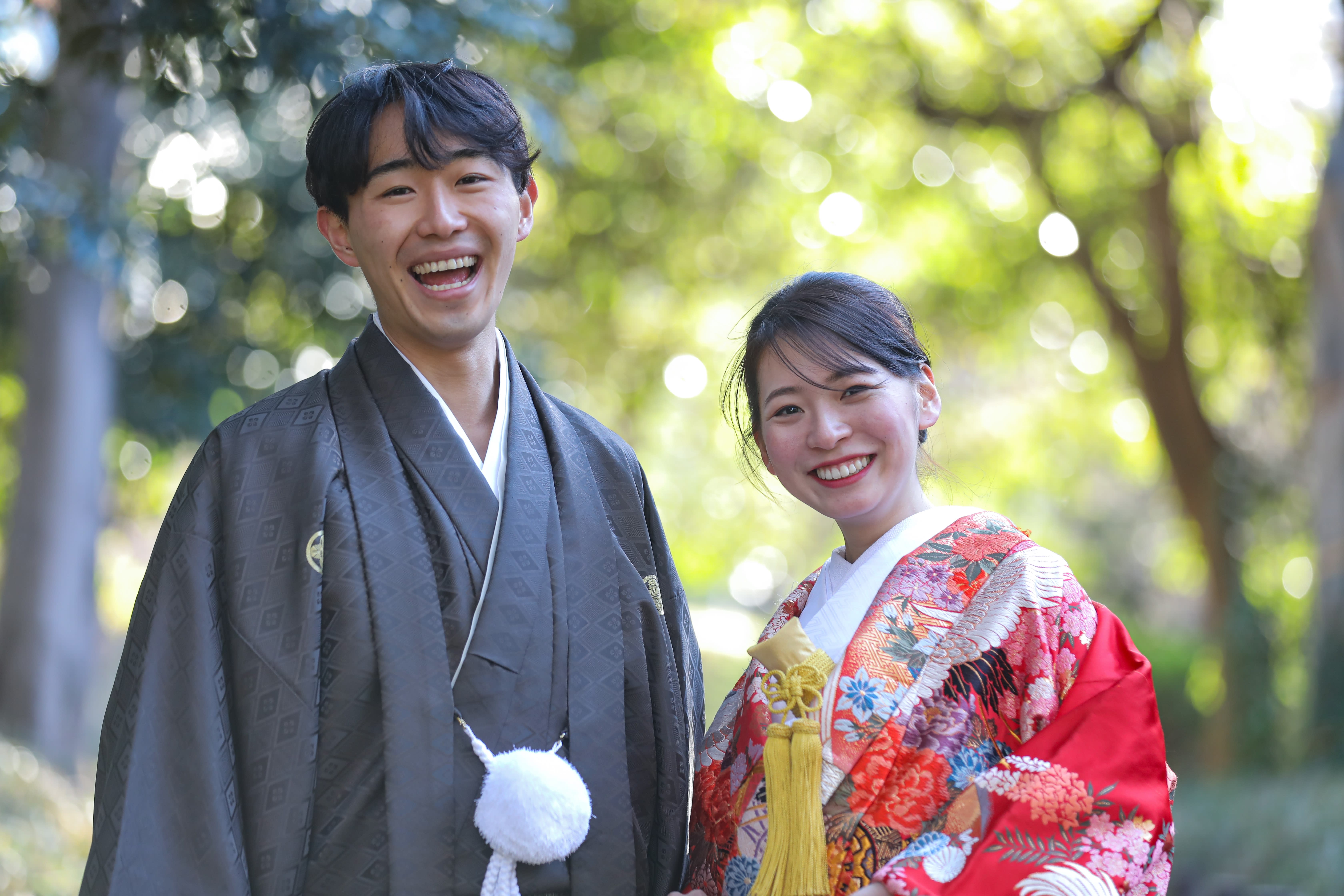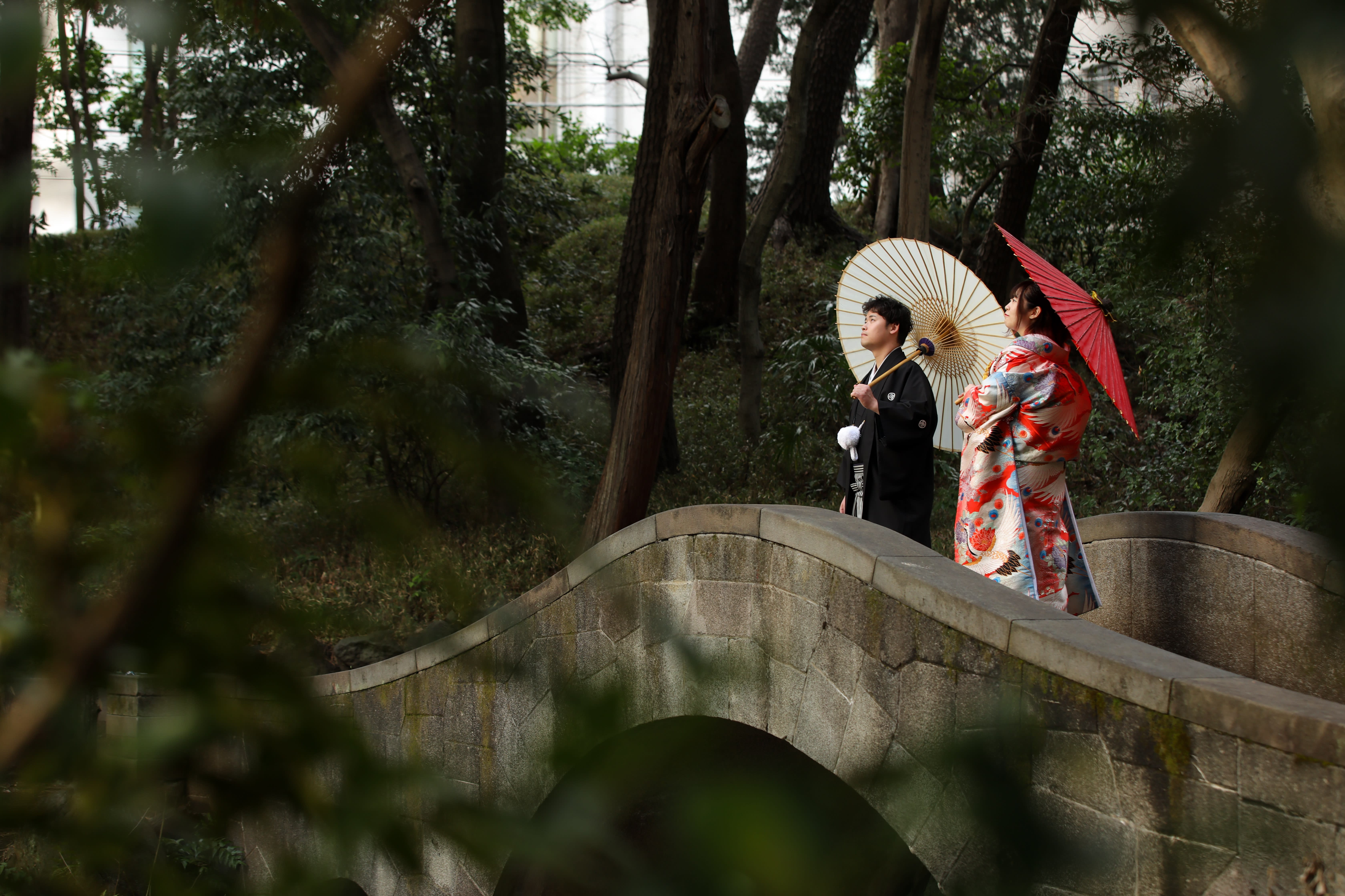 本格日本庭園を再現したスタジオで撮る 和装の結婚写真