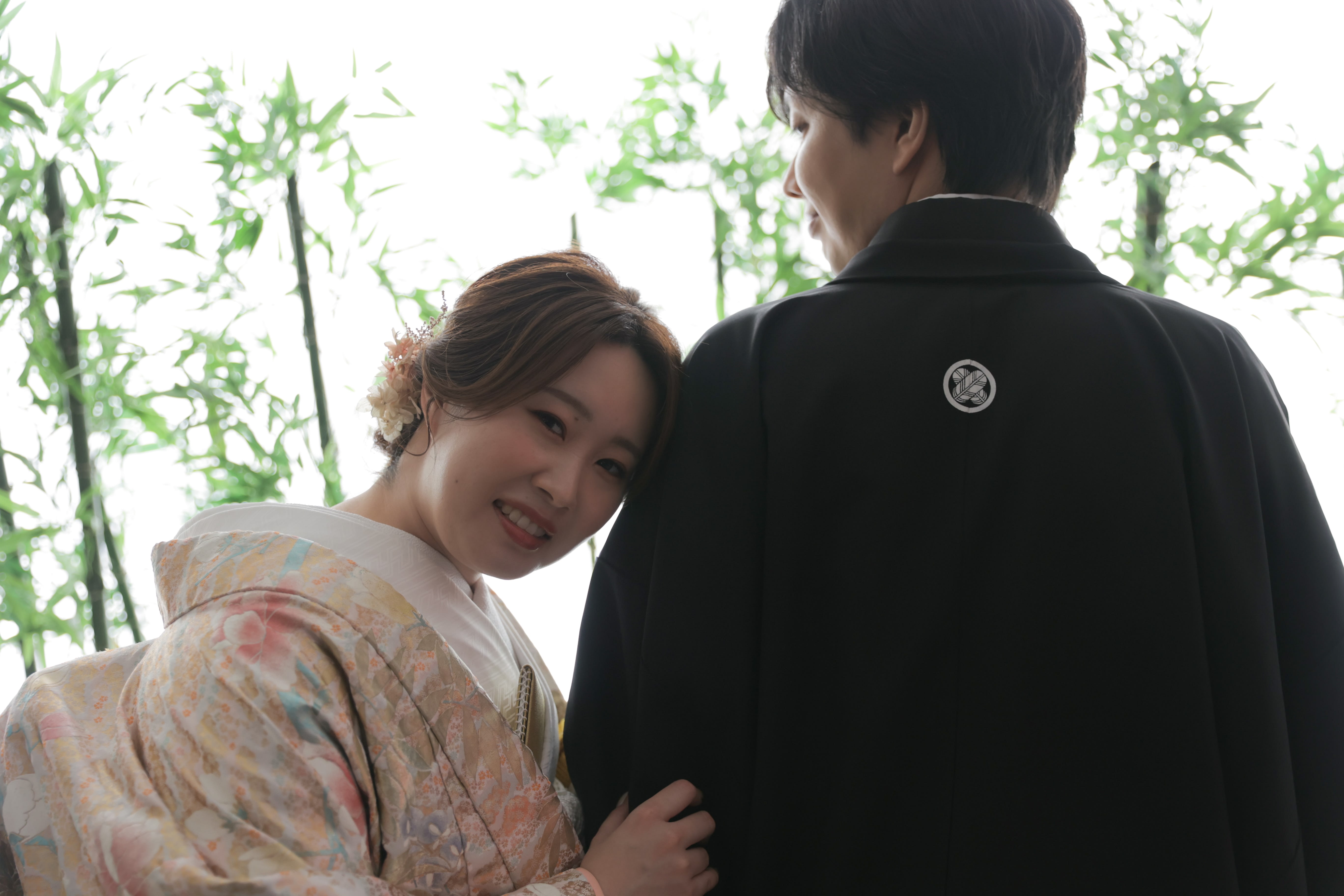 本格日本庭園を再現したスタジオで撮る 和装の結婚写真