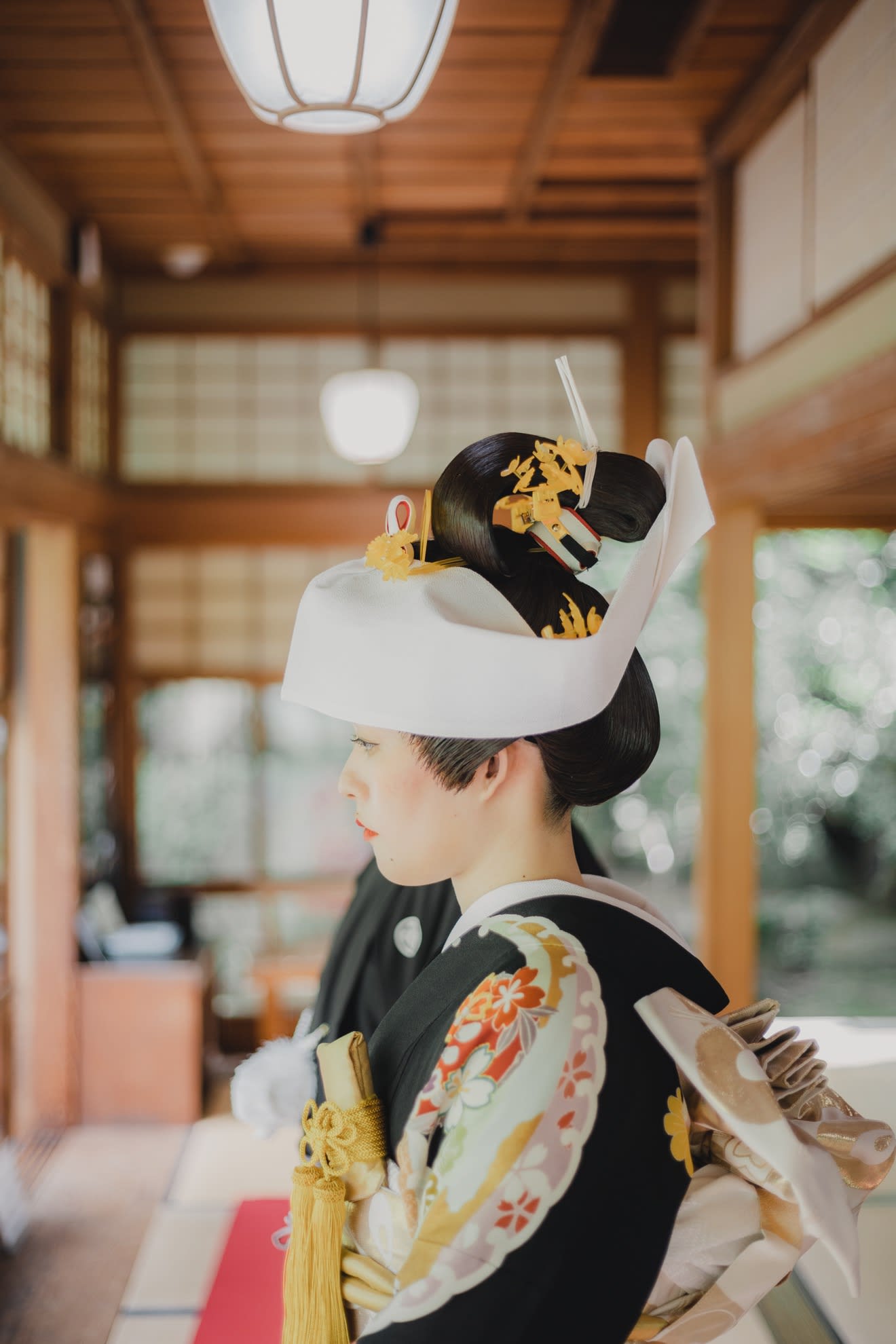 本格日本庭園を再現したスタジオで撮る 和装の結婚写真