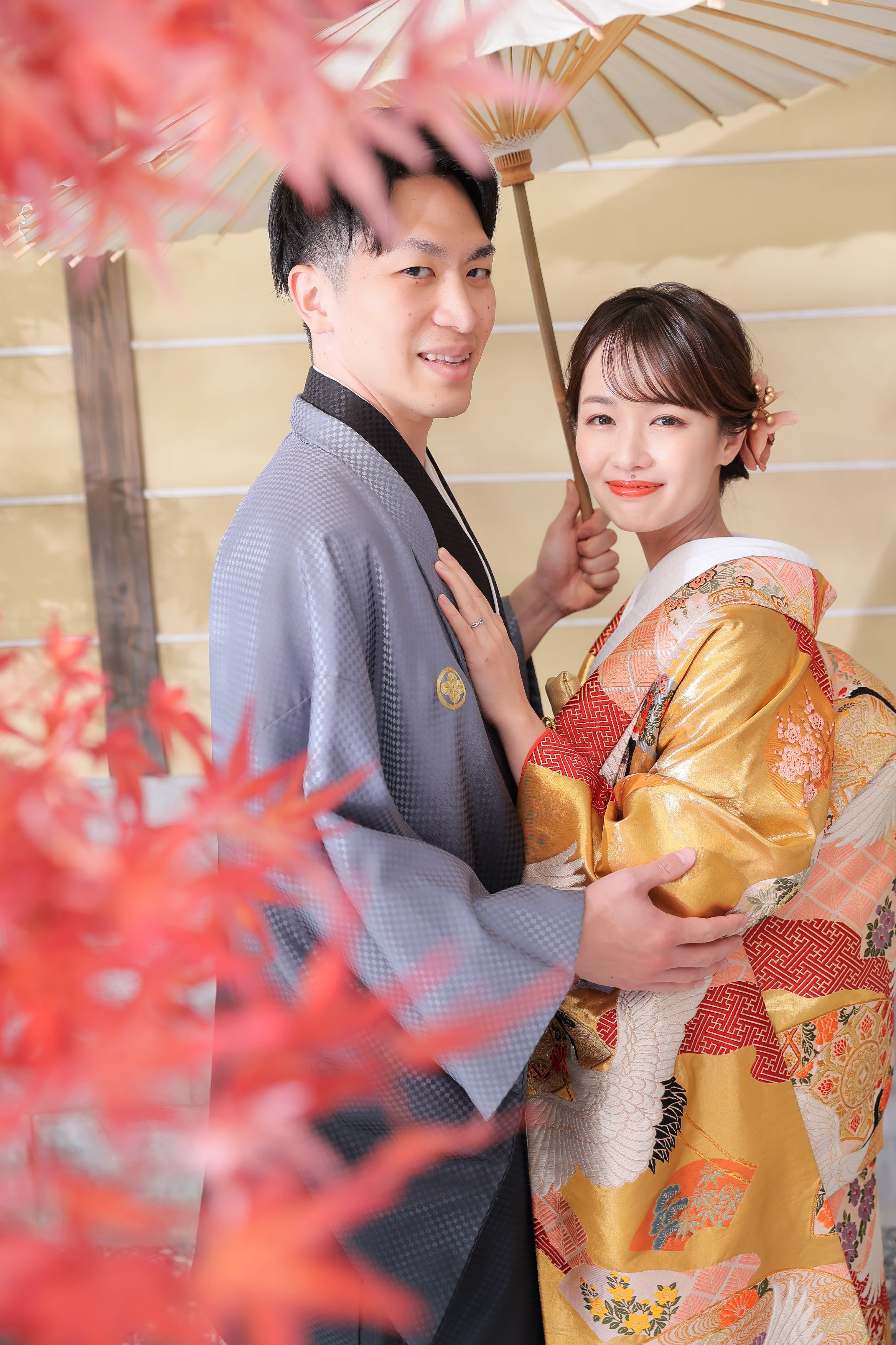 本格日本庭園を再現したスタジオで撮る 和装の結婚写真