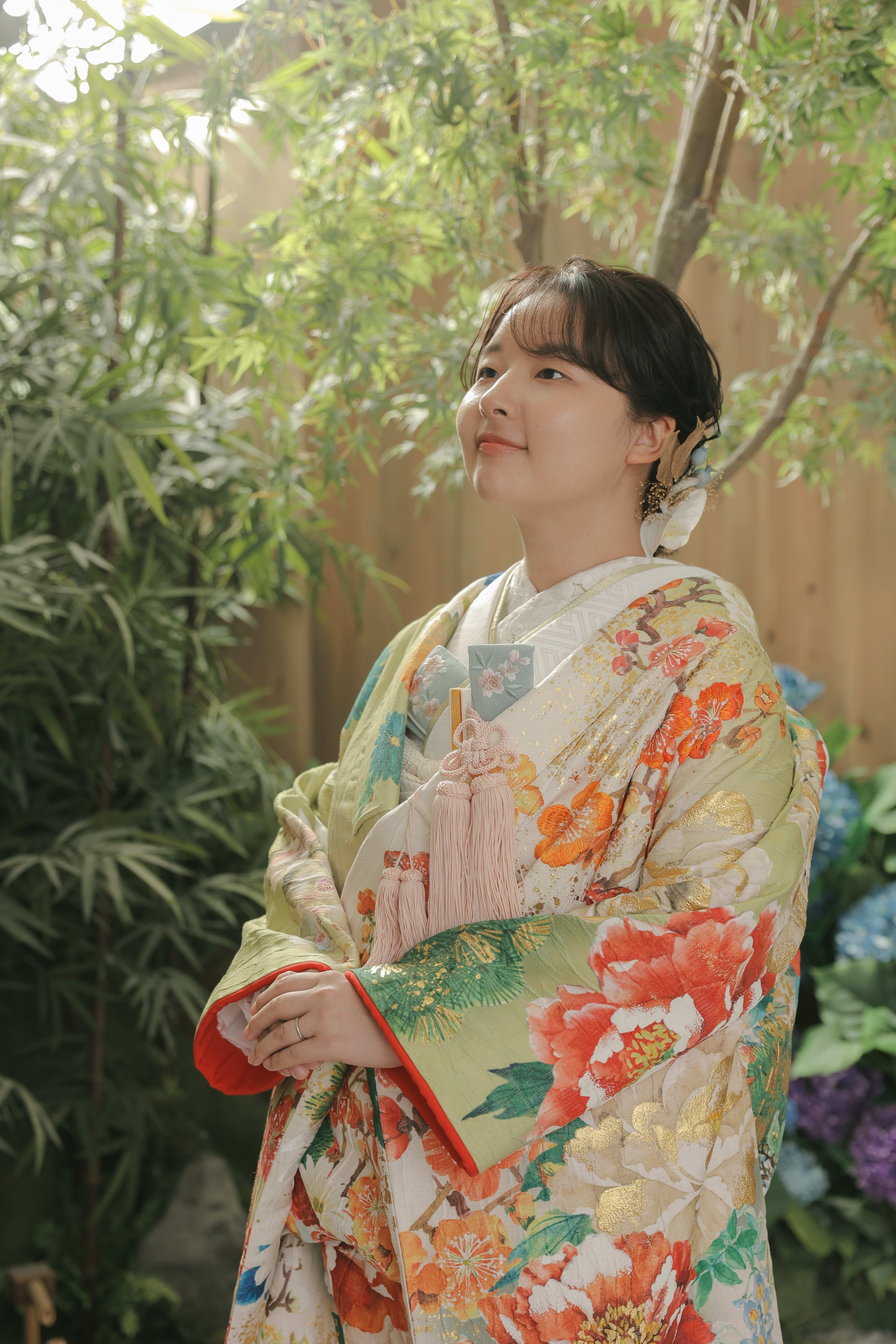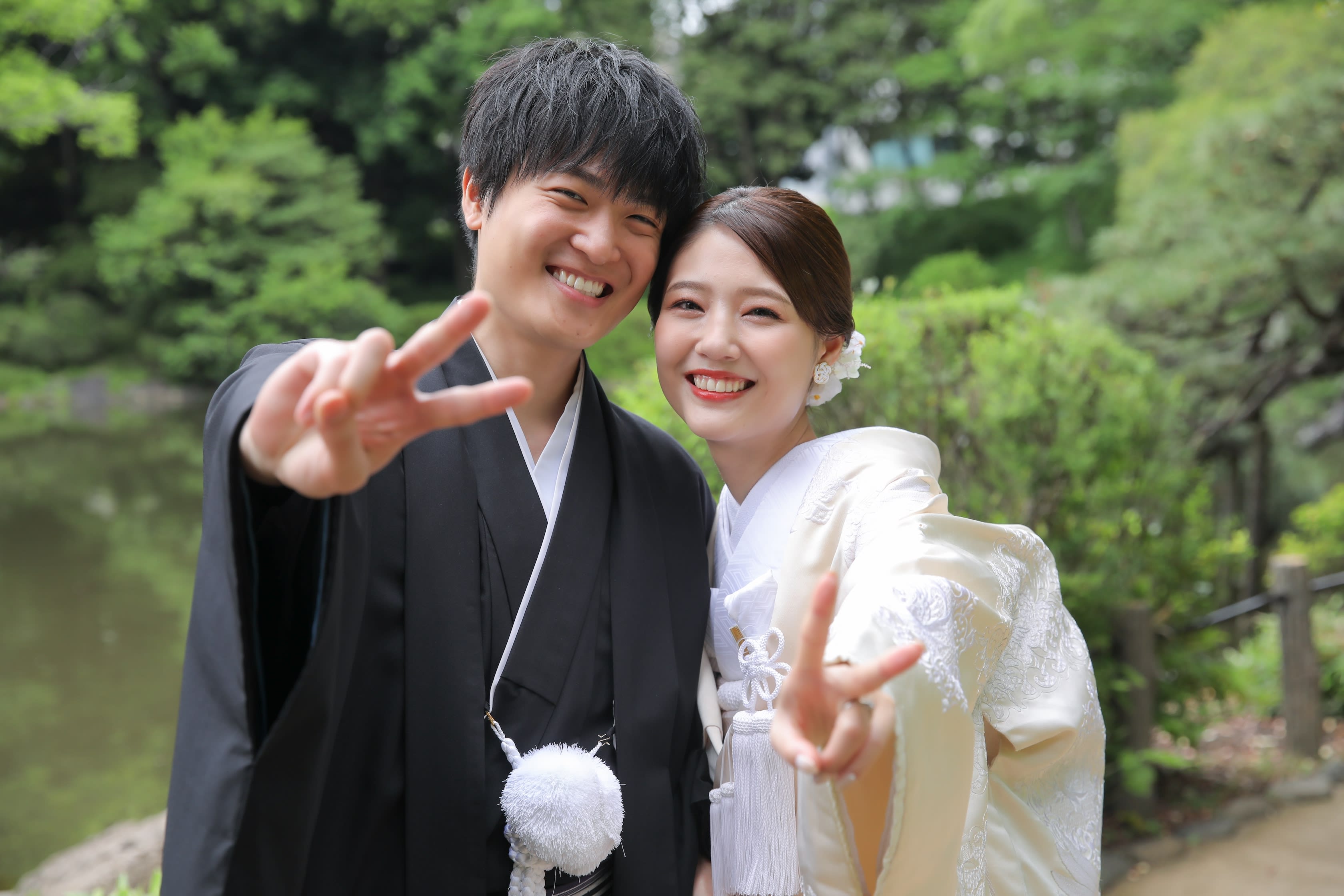 本格日本庭園を再現したスタジオで撮る 和装の結婚写真