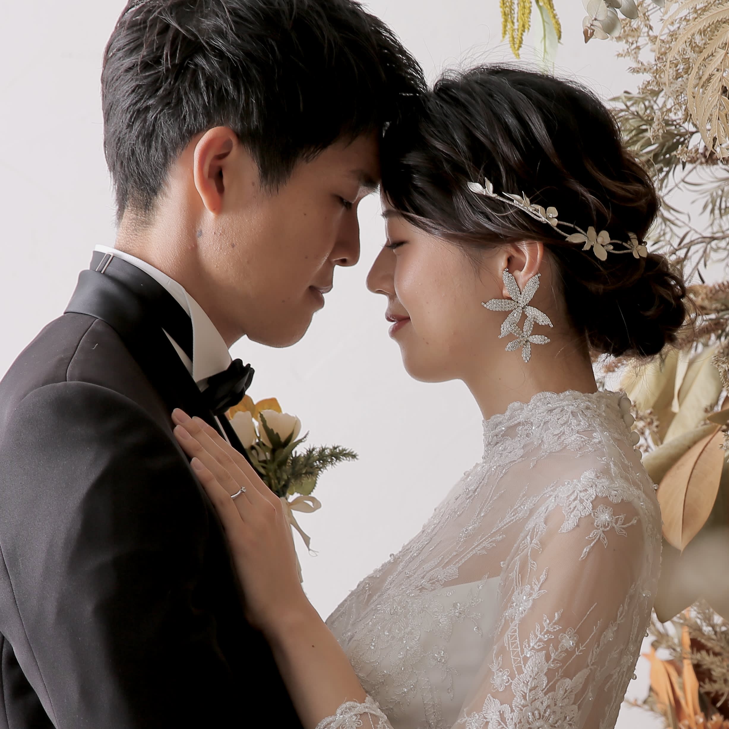 一面お花の壁が登場!新宿店ハウススタジオで撮影する洋装ウェディングフォトプラン