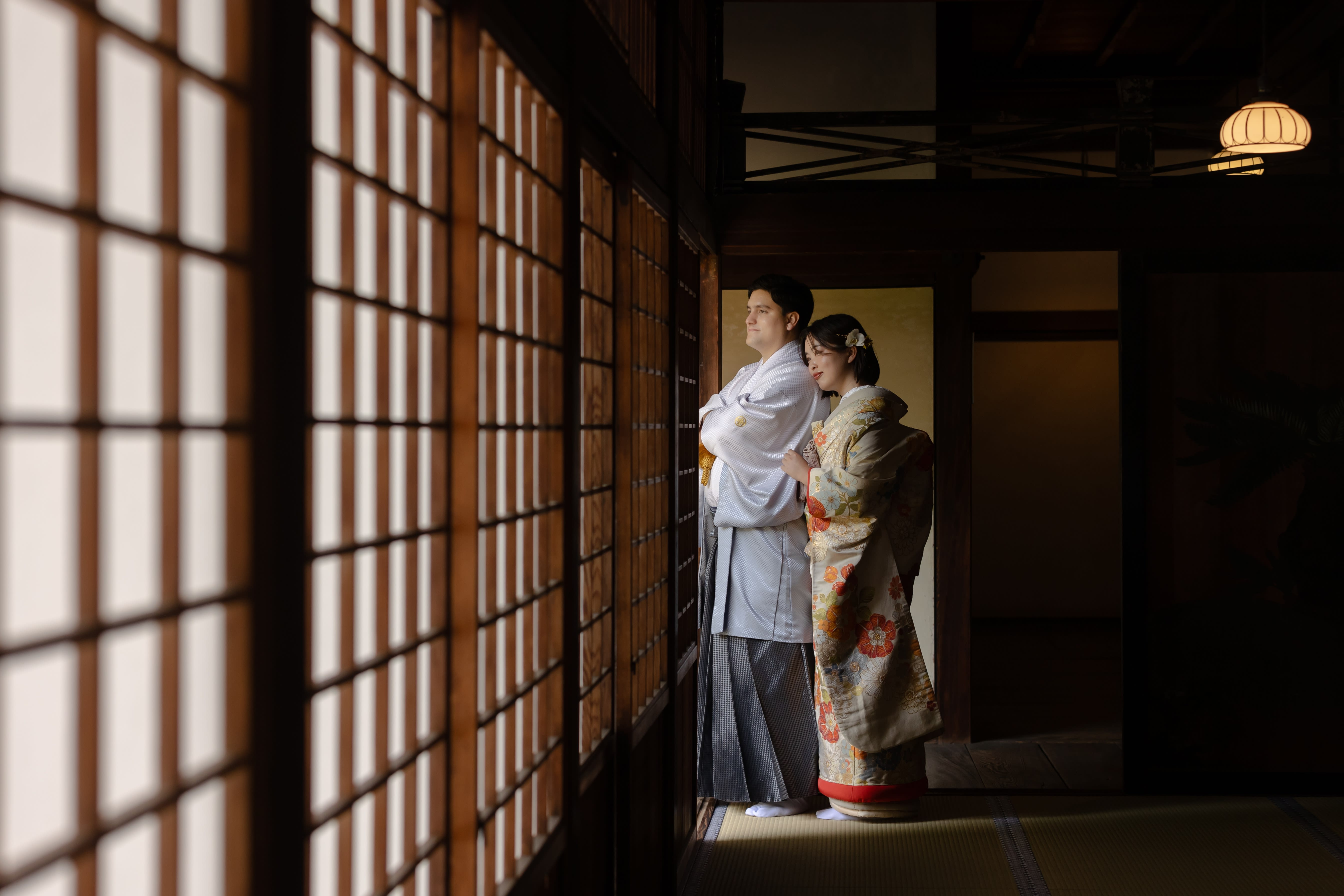 本格日本庭園を再現したスタジオで撮る 和装の結婚写真