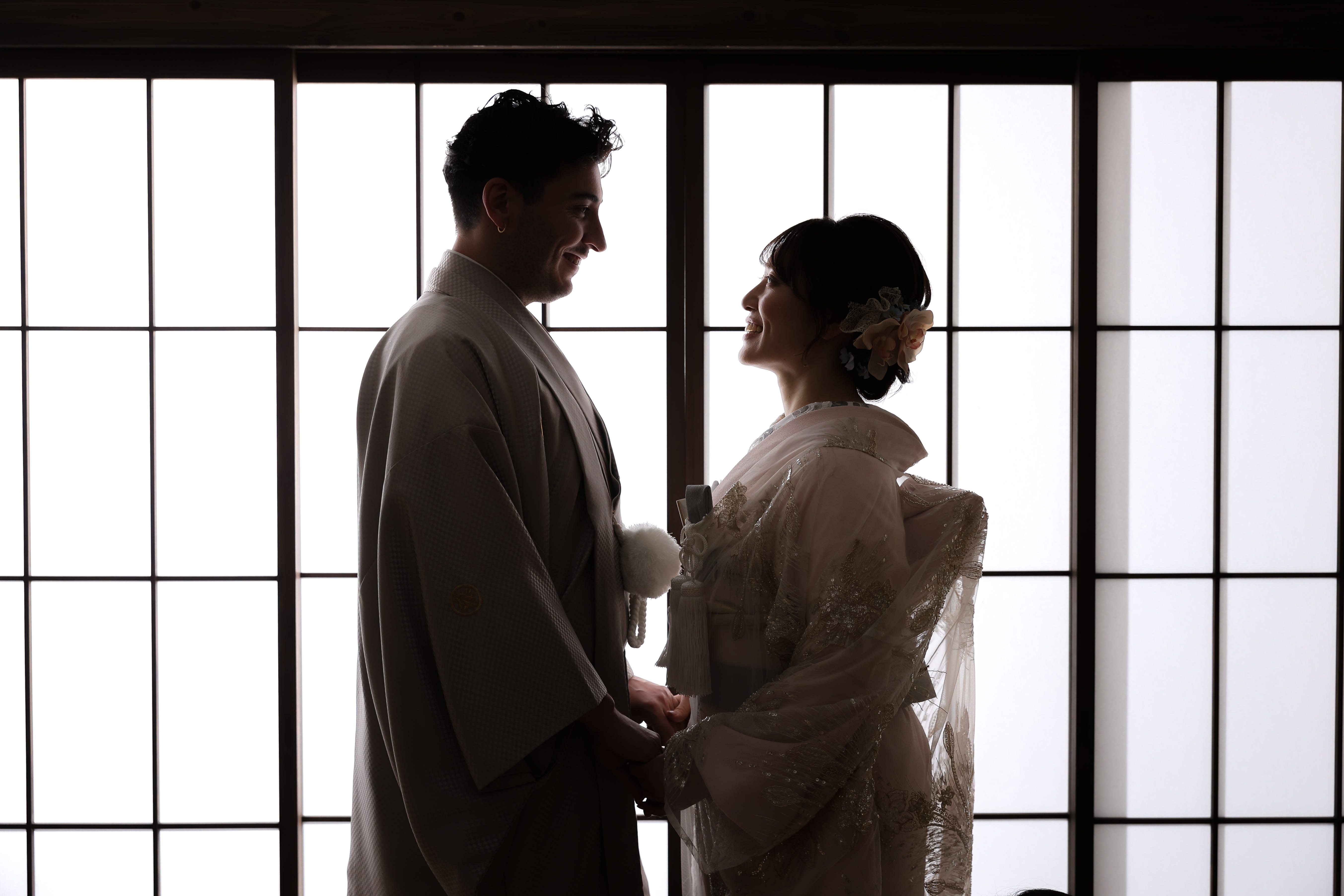 本格日本庭園を再現したスタジオで撮る 和装の結婚写真