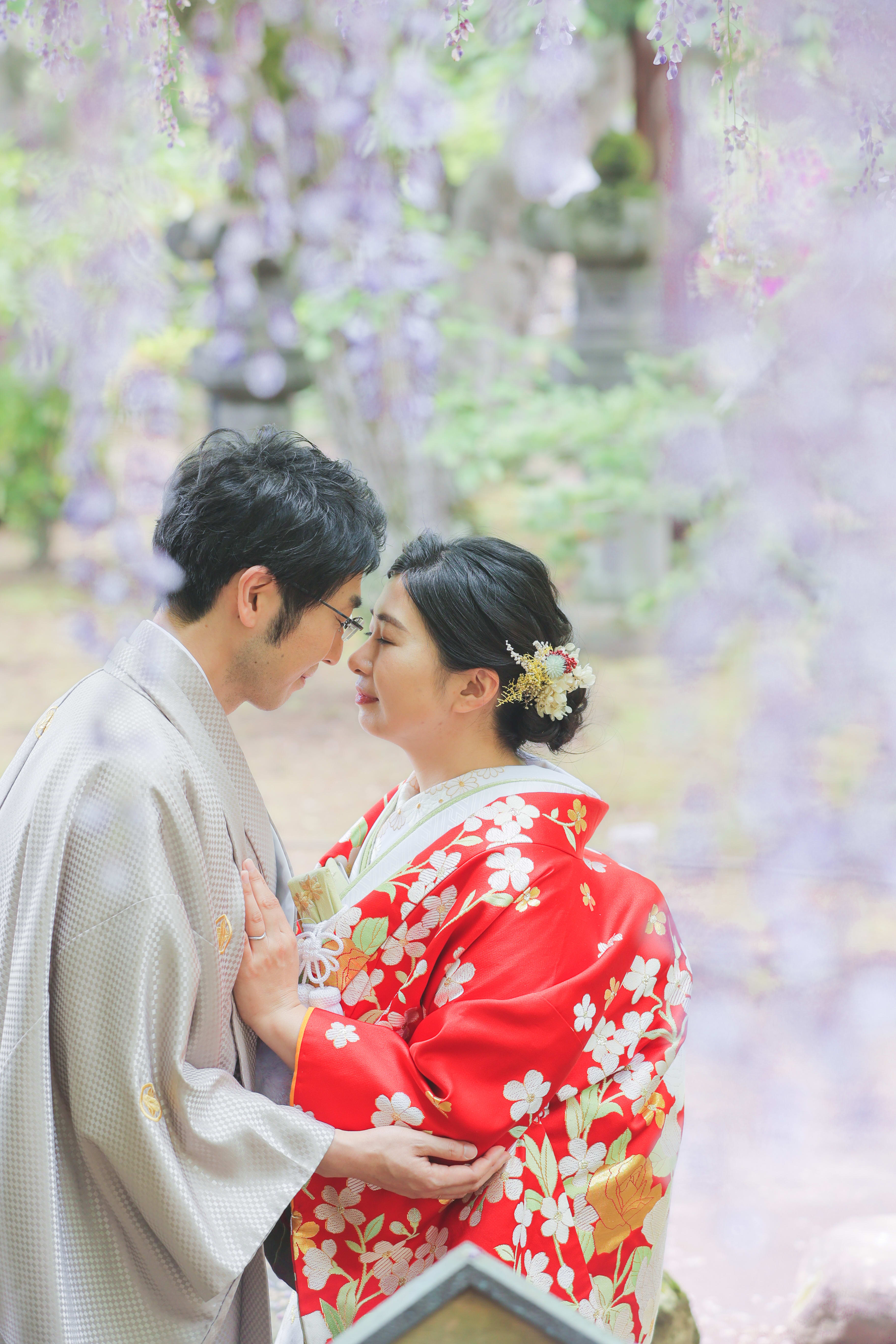 本格日本庭園を再現したスタジオで撮る 和装の結婚写真