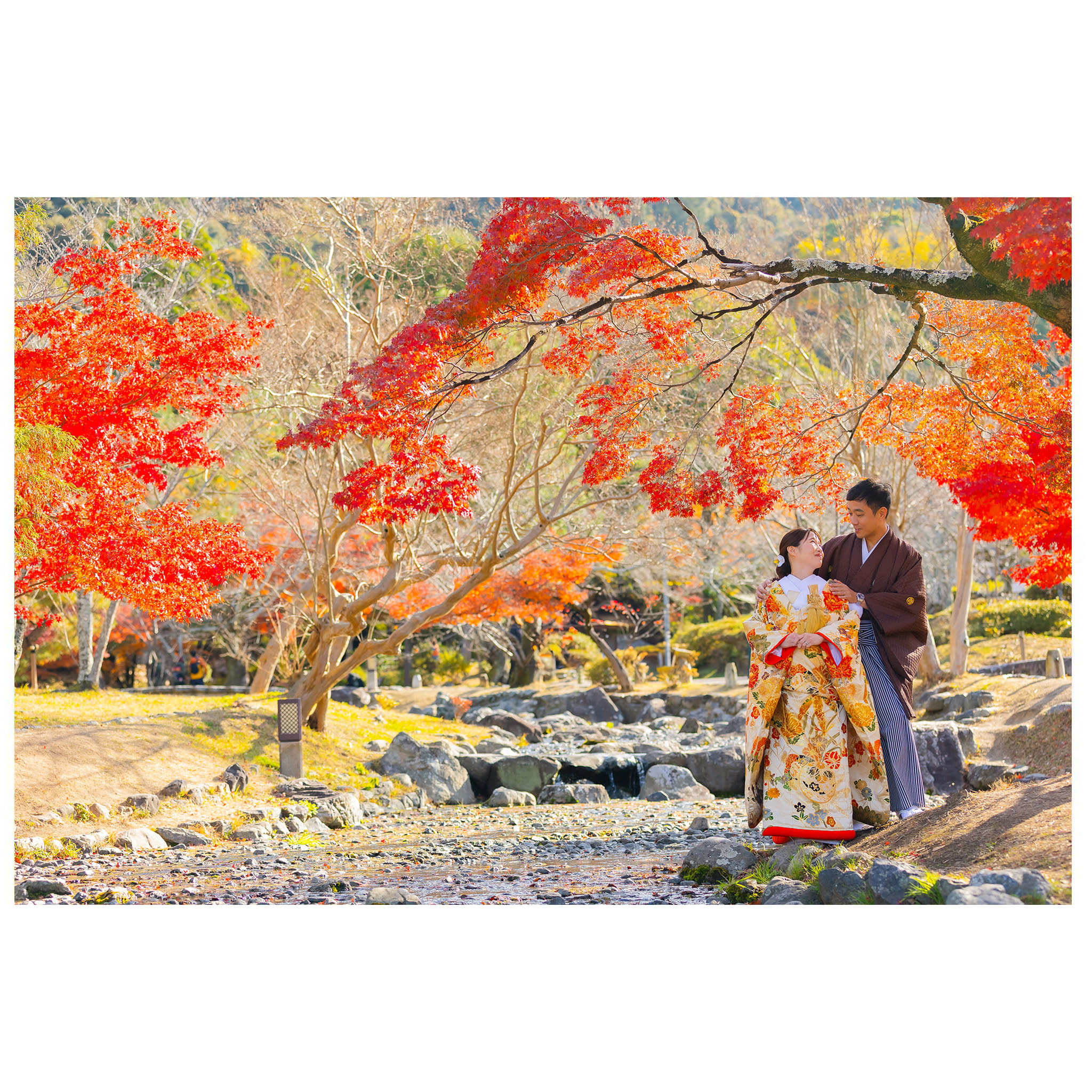 本格日本庭園を再現したスタジオで撮る 和装の結婚写真