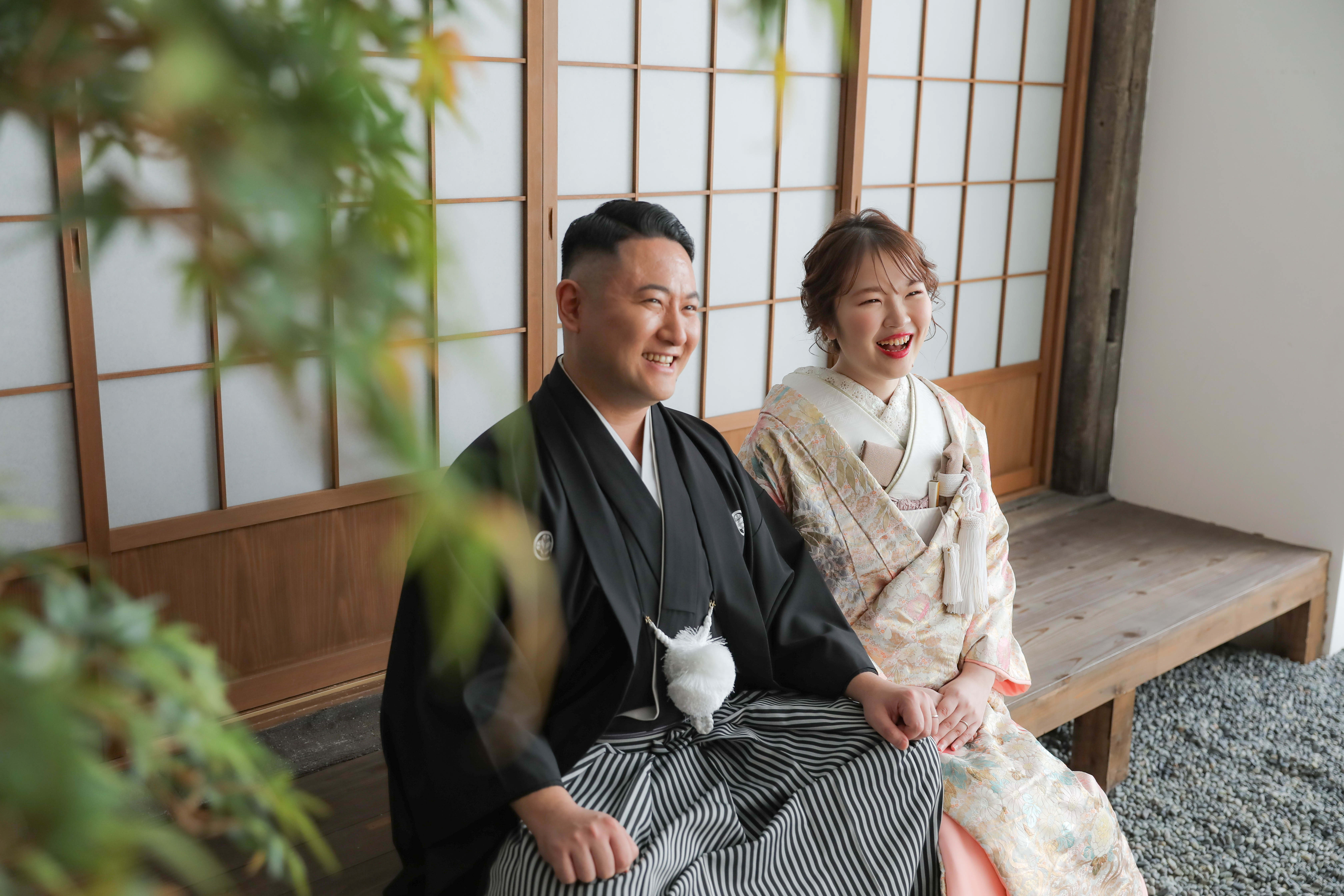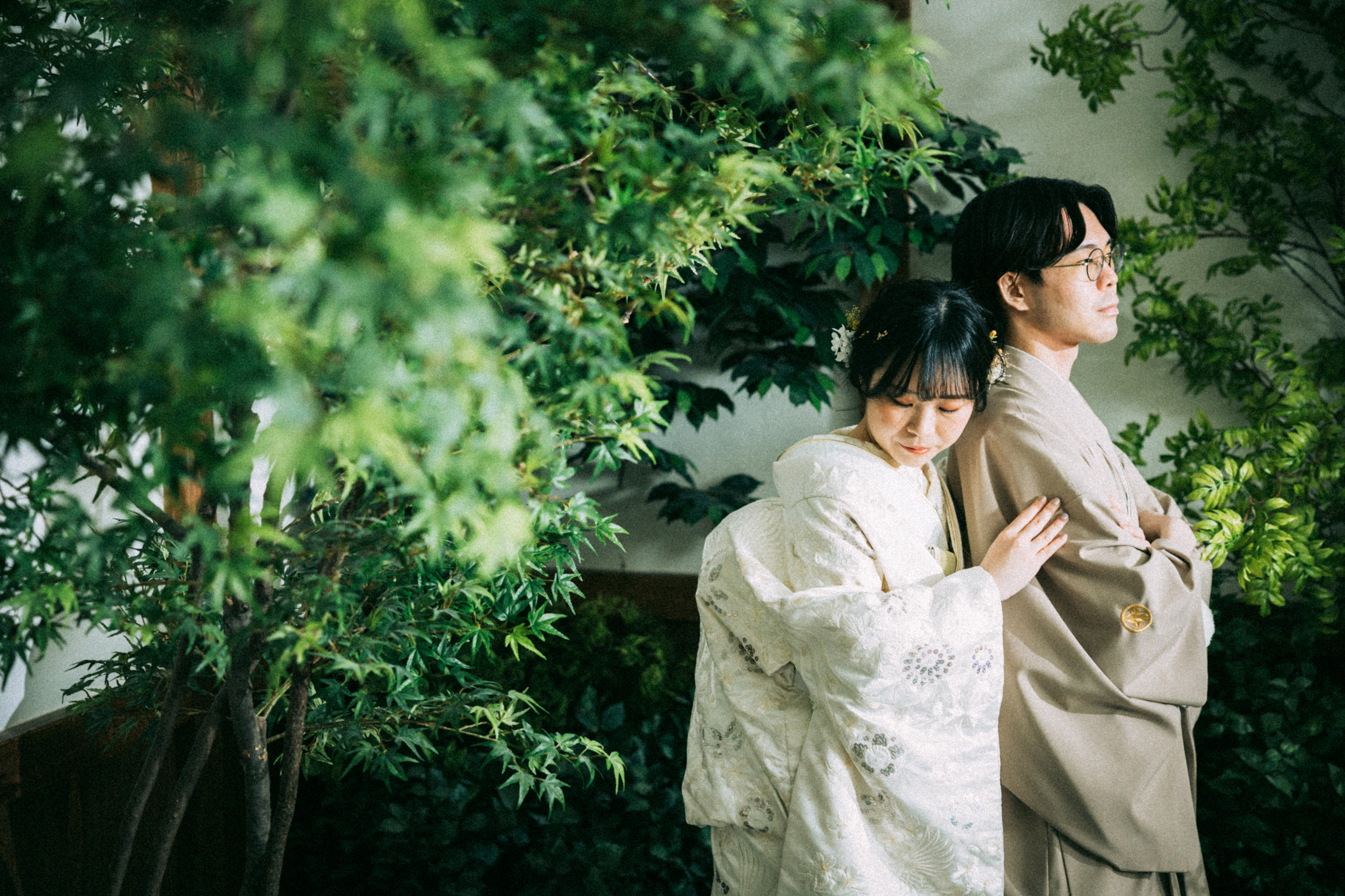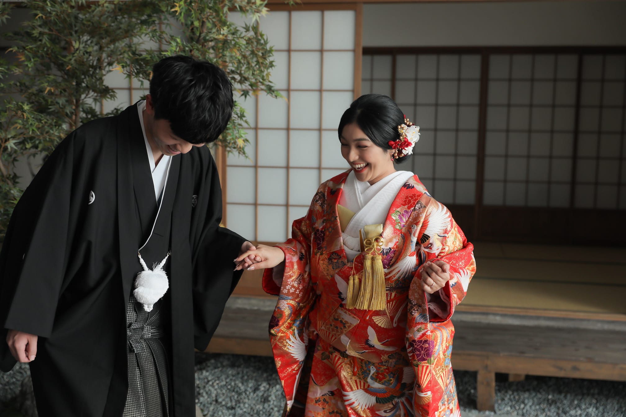 本格日本庭園を再現したスタジオで撮る 和装の結婚写真