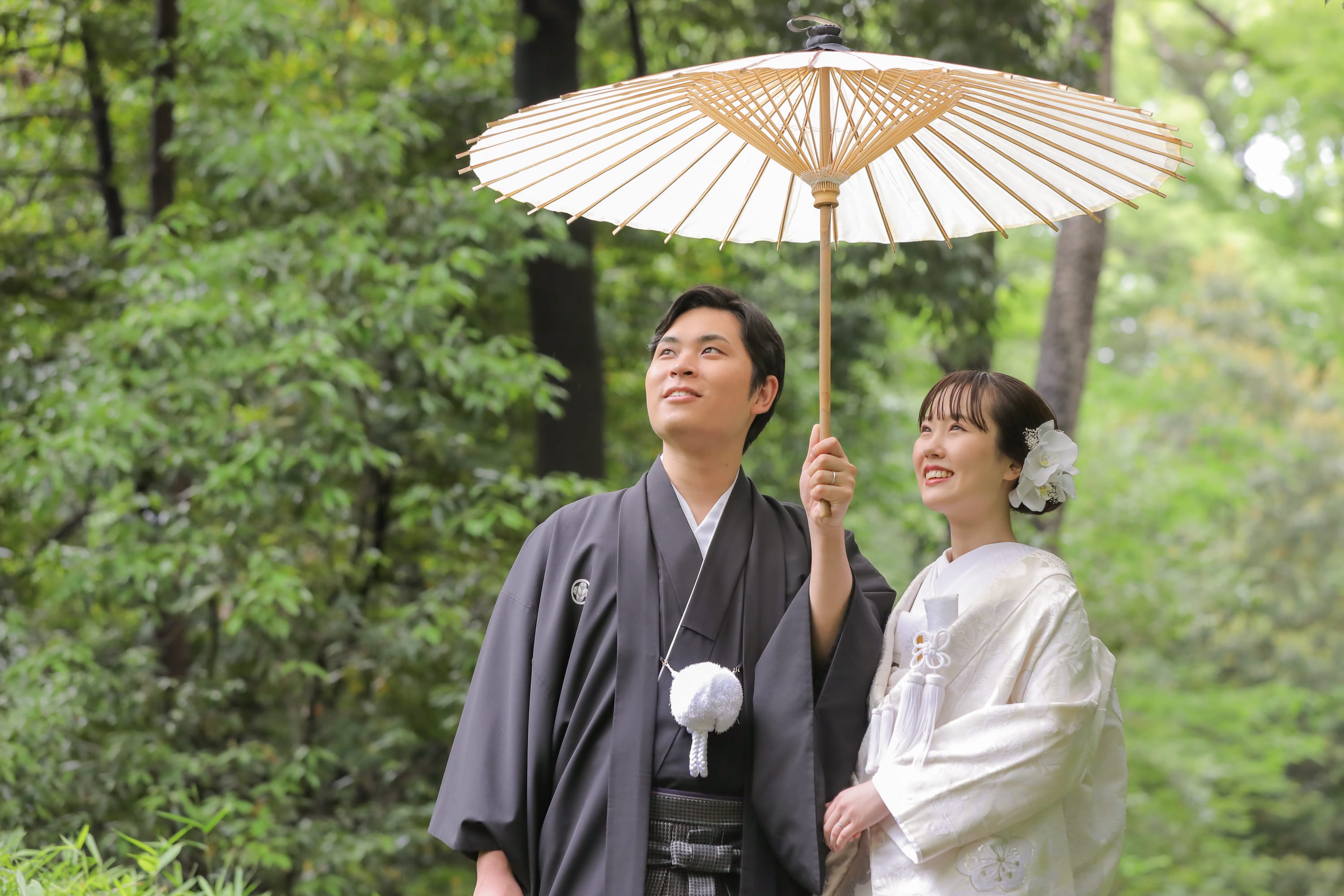 本格日本庭園を再現したスタジオで撮る 和装の結婚写真