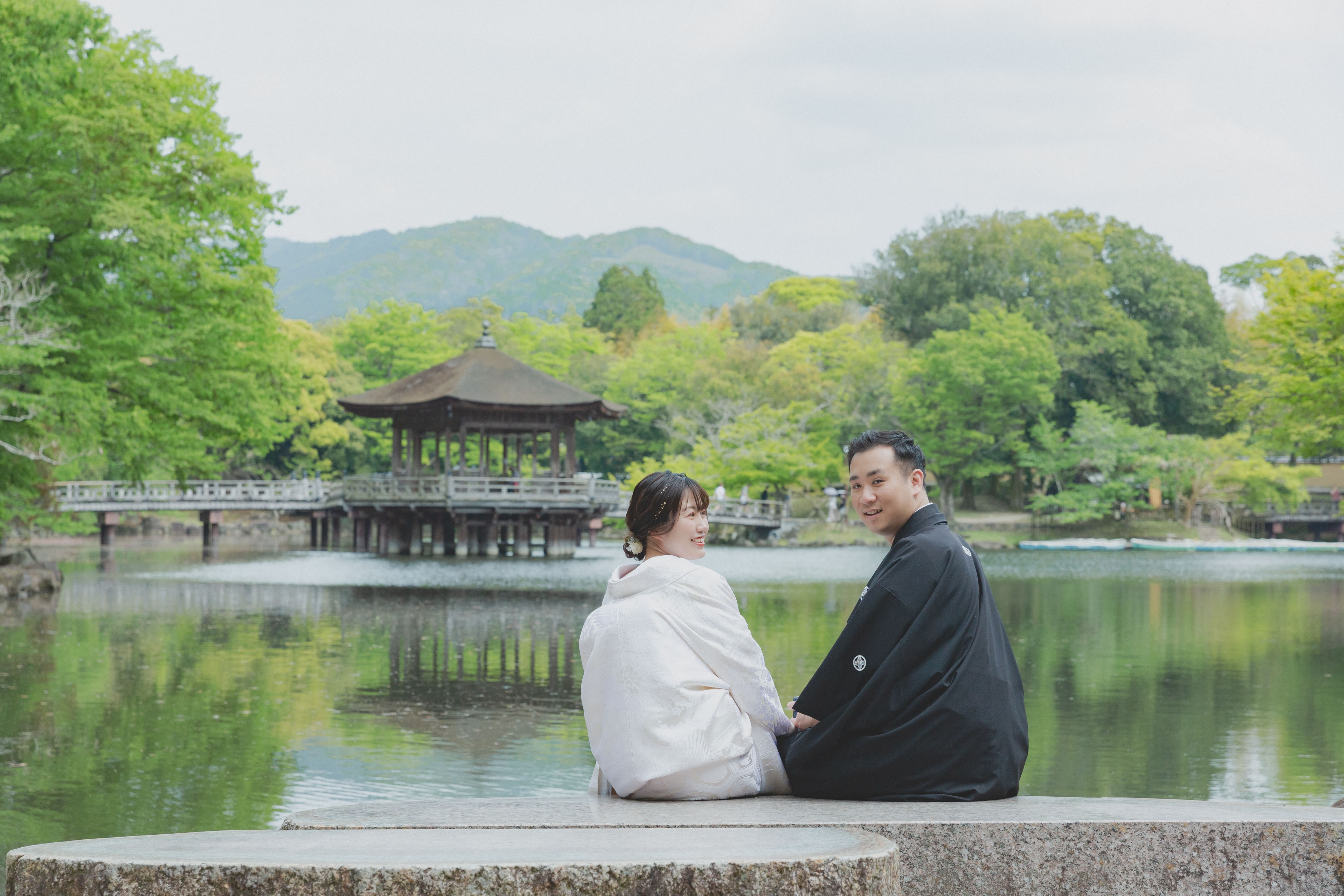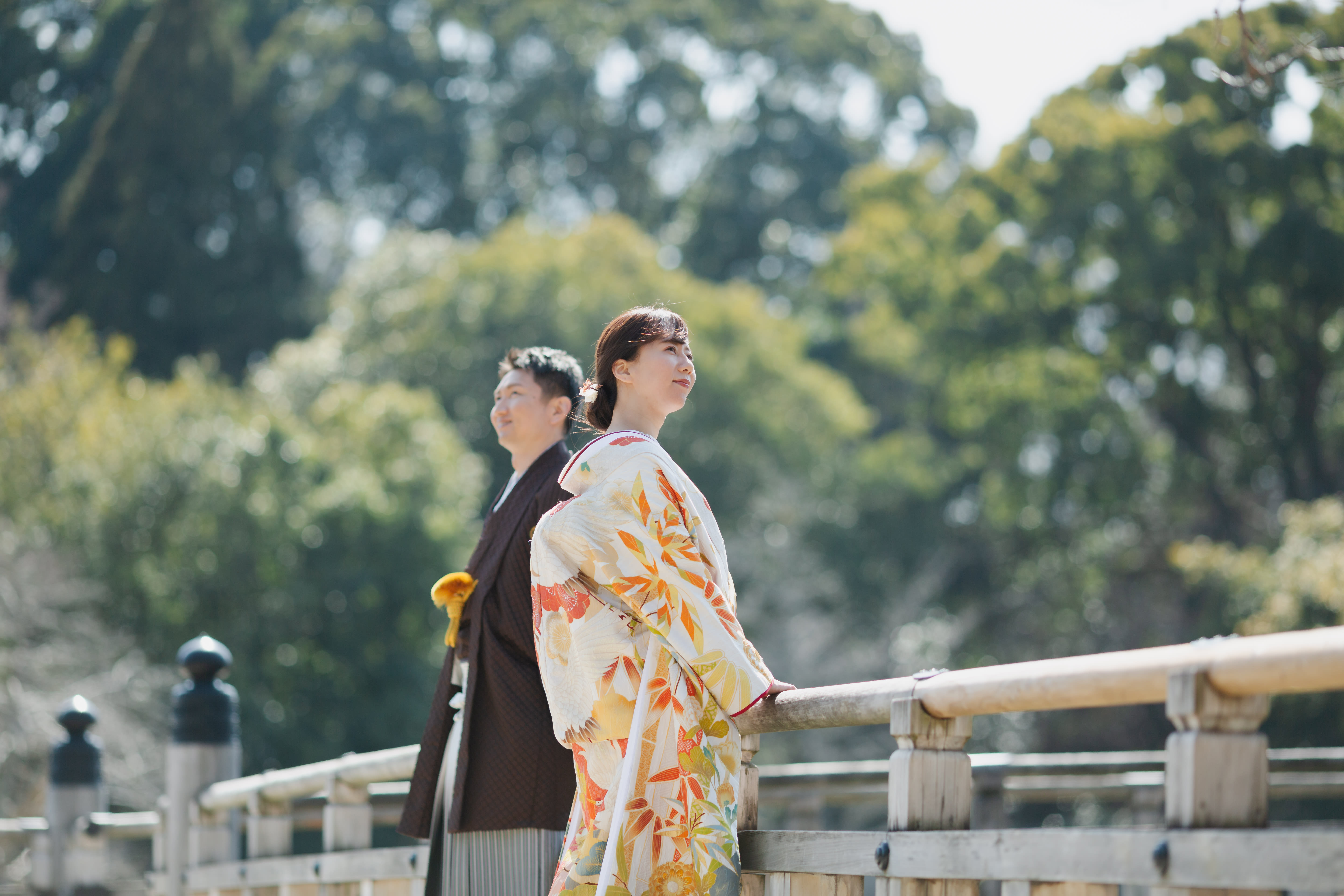 本格日本庭園を再現したスタジオで撮る 和装の結婚写真