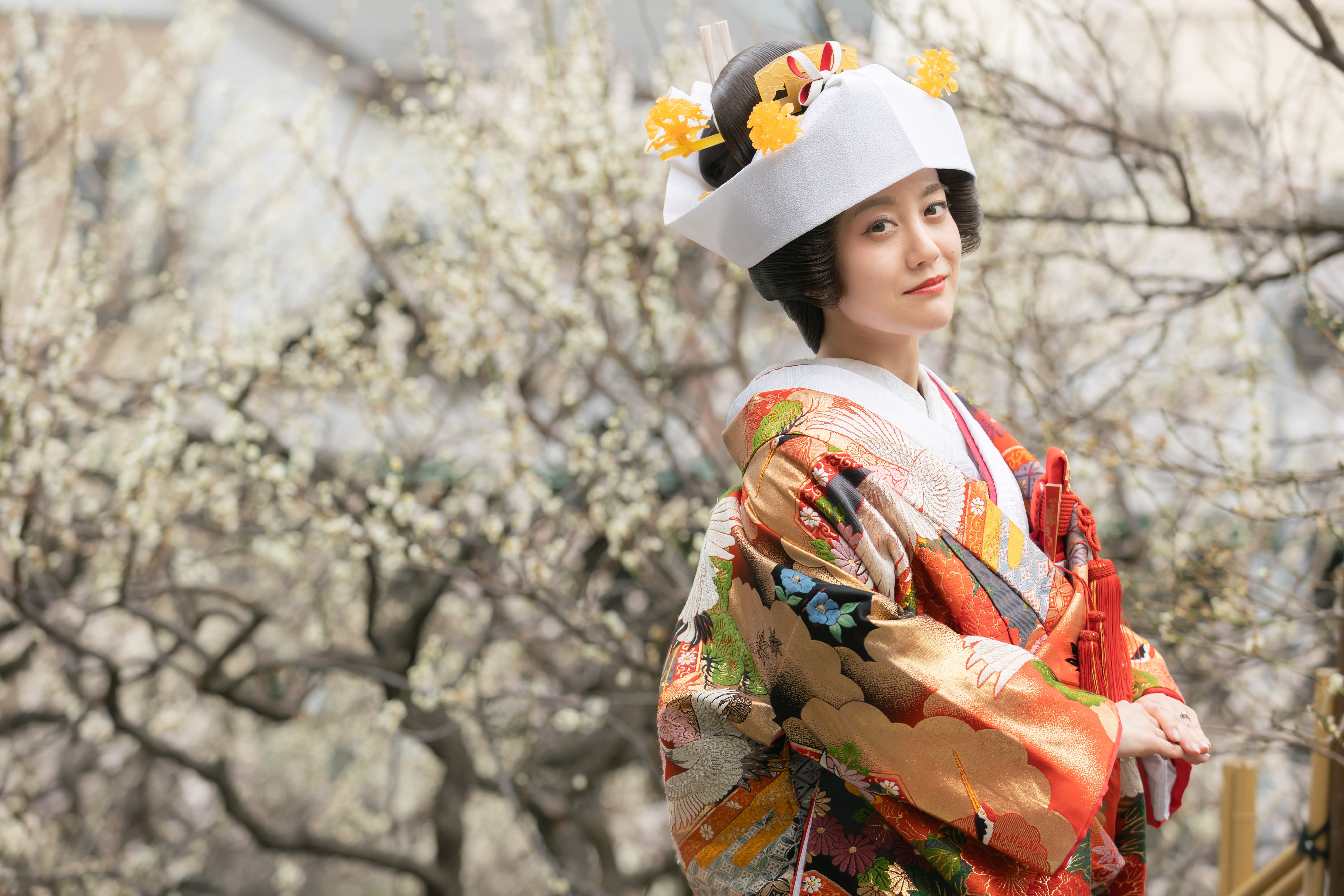 本格日本庭園を再現したスタジオで撮る 和装の結婚写真
