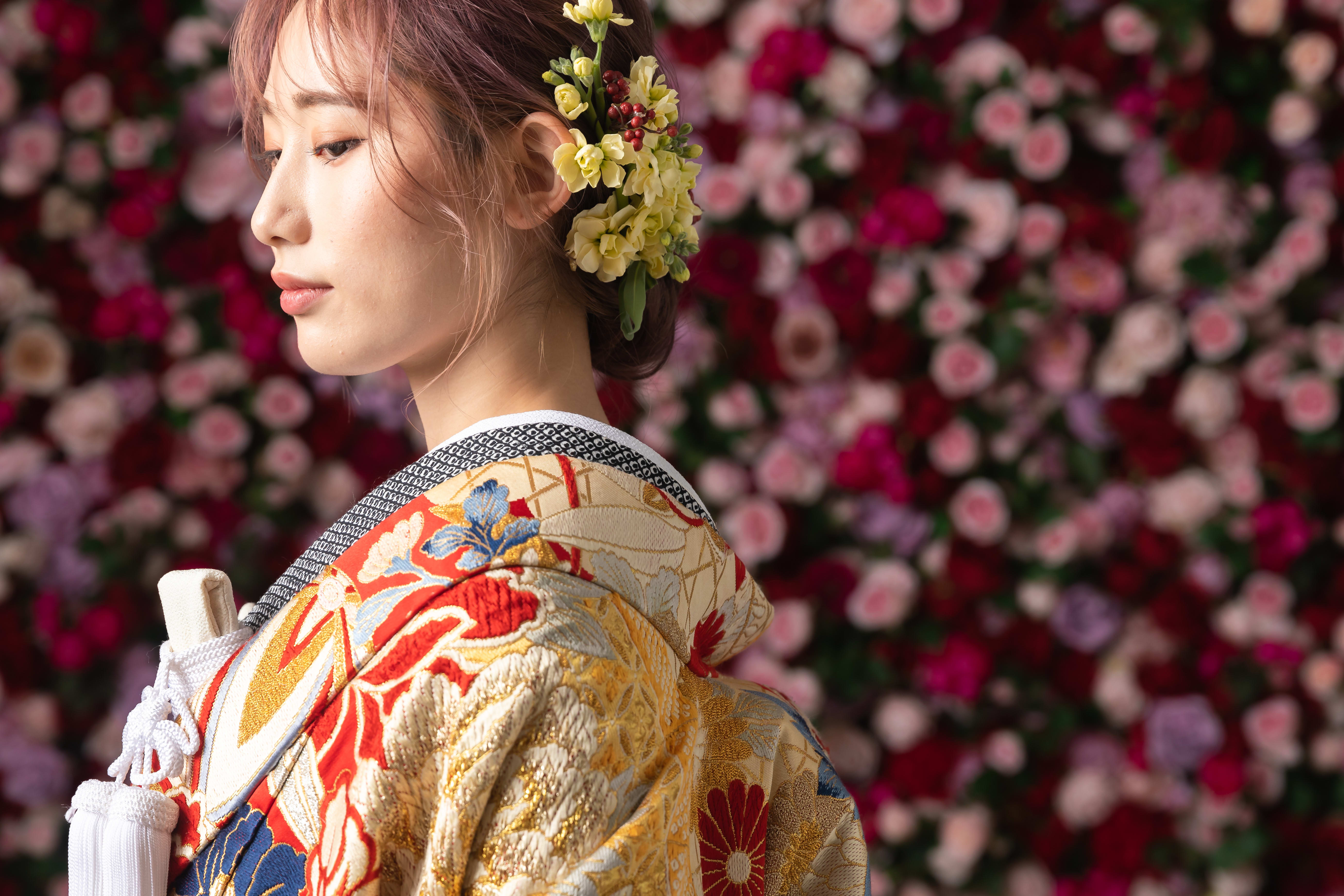 一面お花の壁が登場!新宿店ハウススタジオで撮影する洋装ウェディングフォトプラン