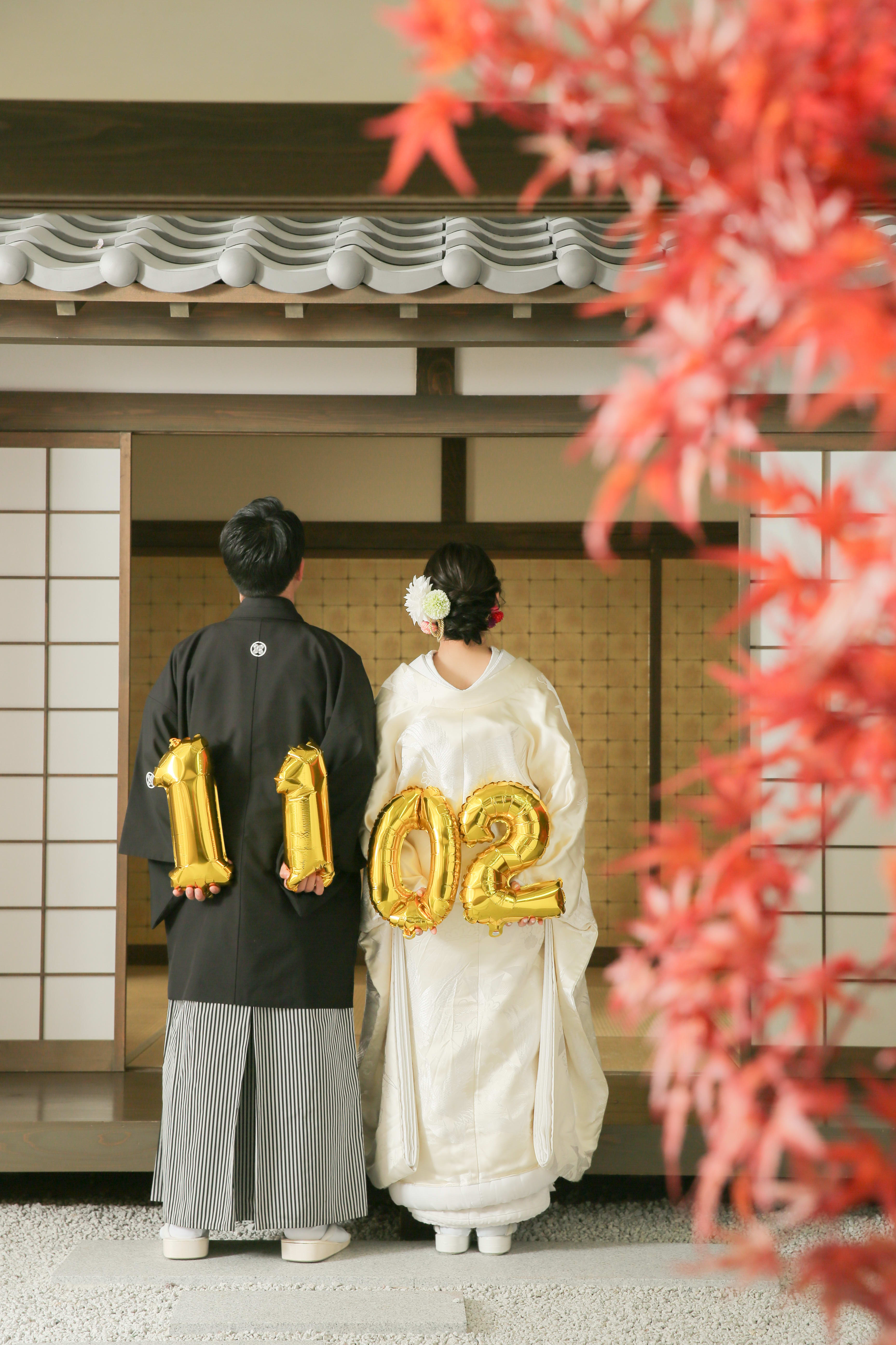 本格日本庭園を再現したスタジオで撮る 和装の結婚写真