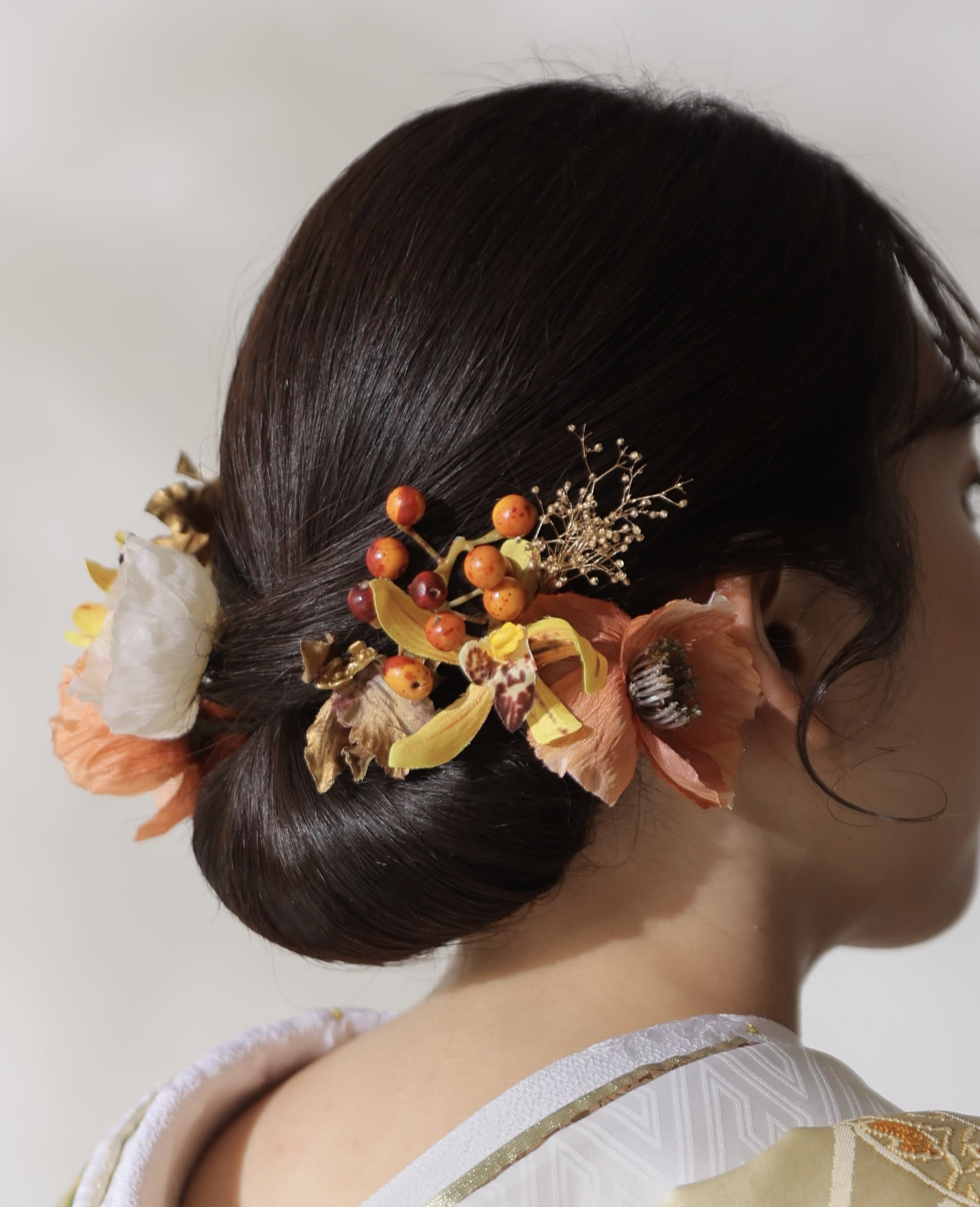 いくつになっても、一生に一度の瞬間を懐かしんでもらいたいから 新婦様に寄り添って、”自分らしさ”を大切にしたご提案を心掛けています🕊️ 衣装合わせから当日まで、楽しい時間を一緒に過ごしていただけたら嬉しいです🙌 美容師として7年の経験を積み、ブライダルの世界に飛び込みたくさんの花嫁さまを担当してきました👰♀️💐 明るく親しみやすい性格なので、どんなことでも気軽にご相談ください。 お二人の特別な思い出のお手伝いができるのを楽しみにしています。 お支度から楽しくリラックスしていきましょ〜 ※生花を使用したアレンジもご相談ください
