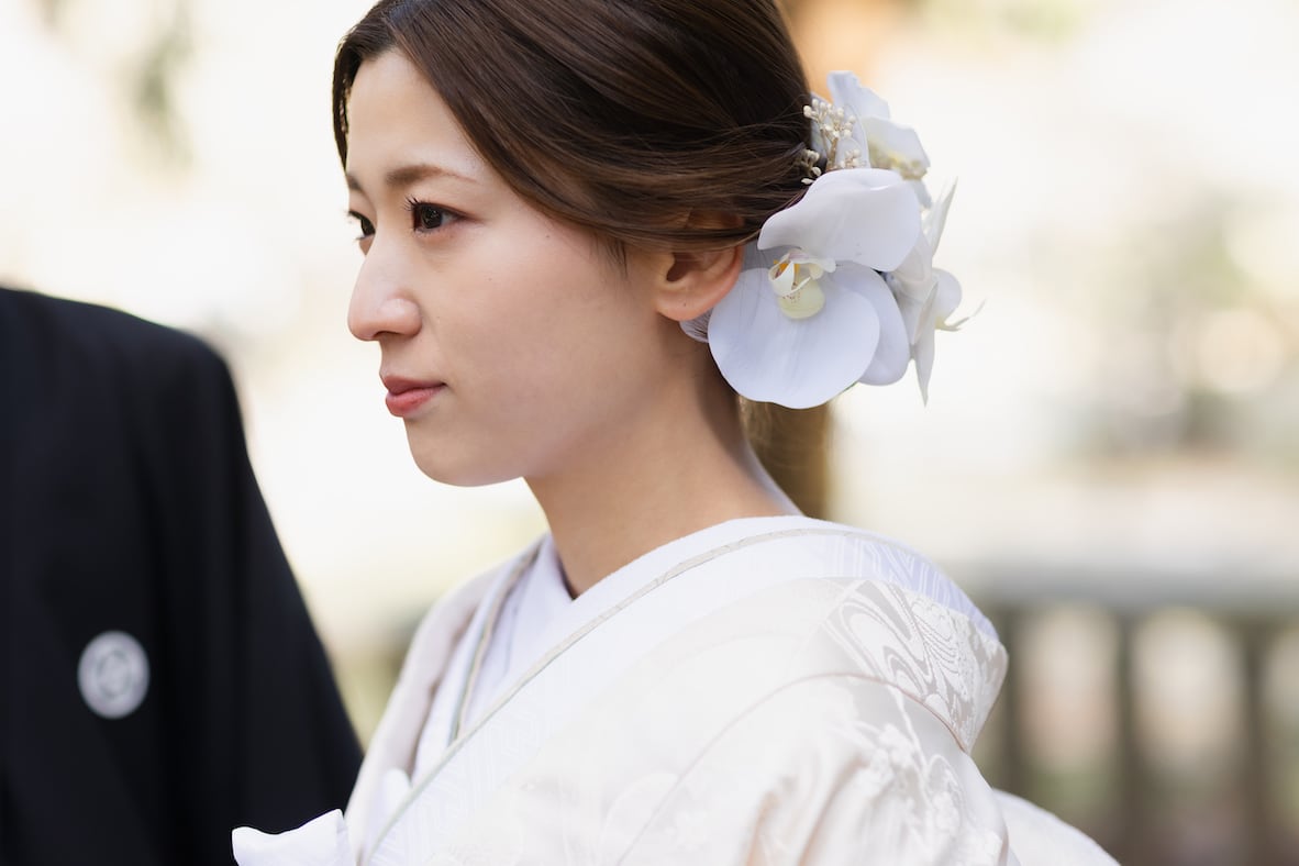 本格的な茶室スタジオで撮影する、和装の結婚写真