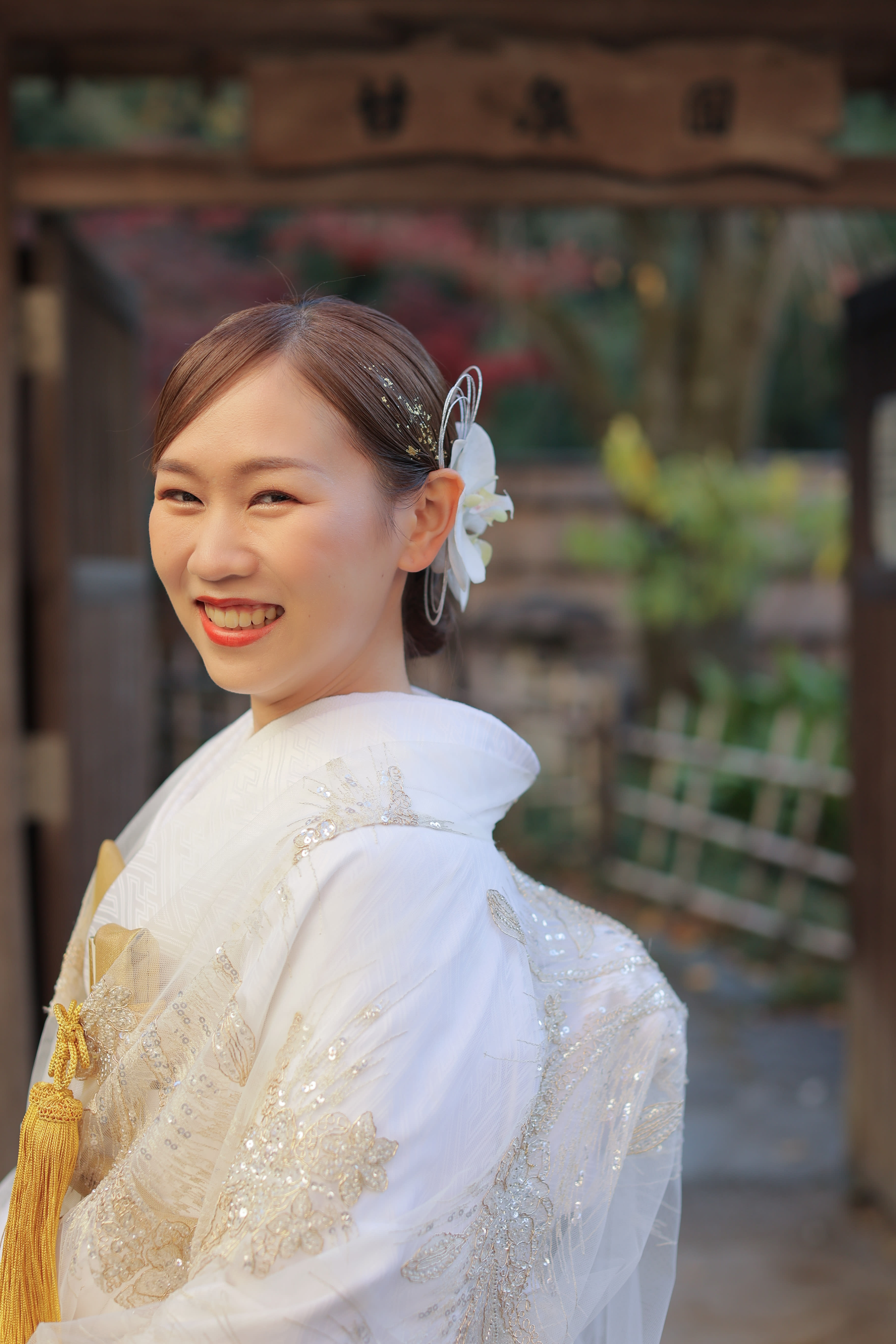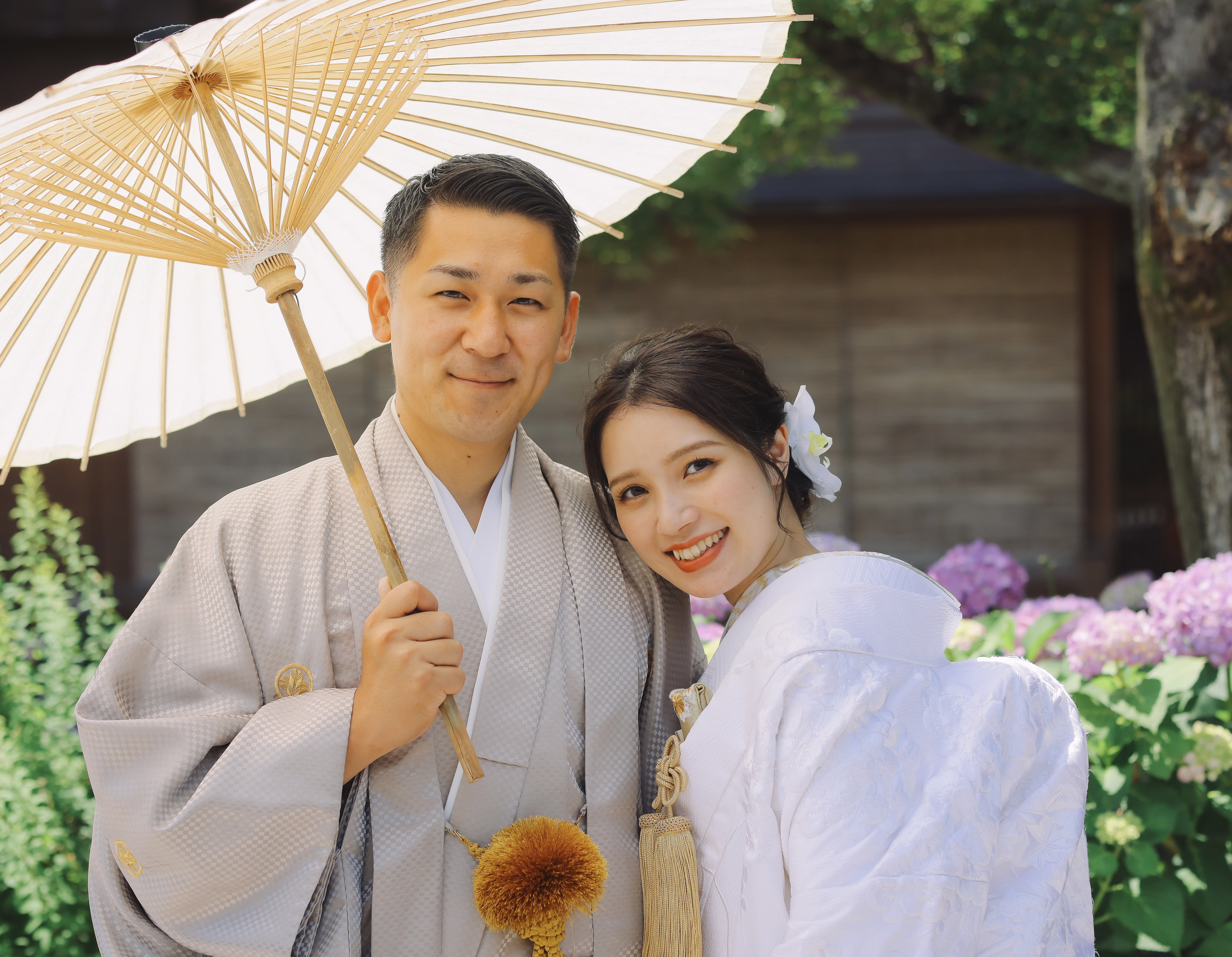 本格日本庭園を再現したスタジオで撮る 和装の結婚写真