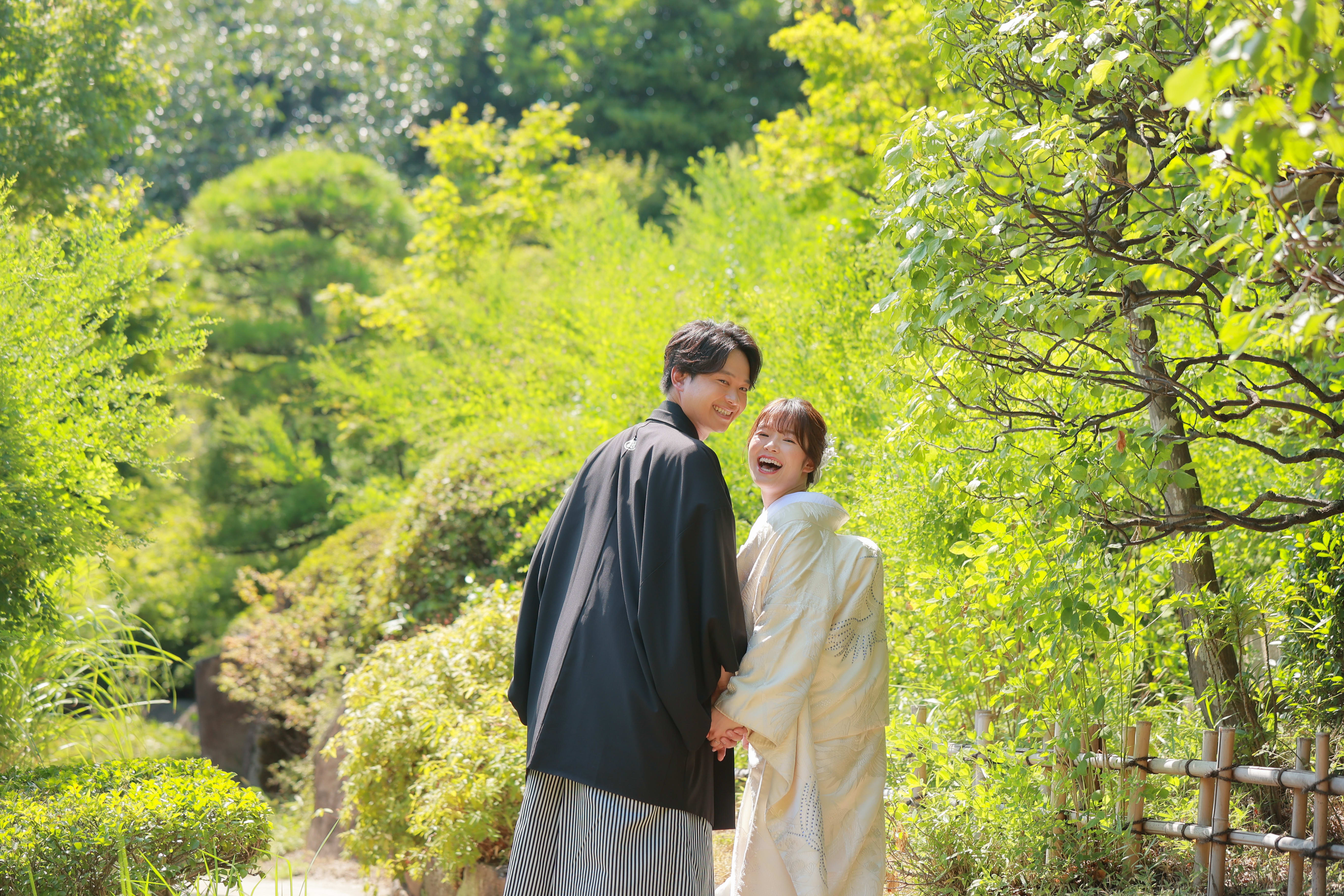 本格日本庭園を再現したスタジオで撮る 和装の結婚写真
