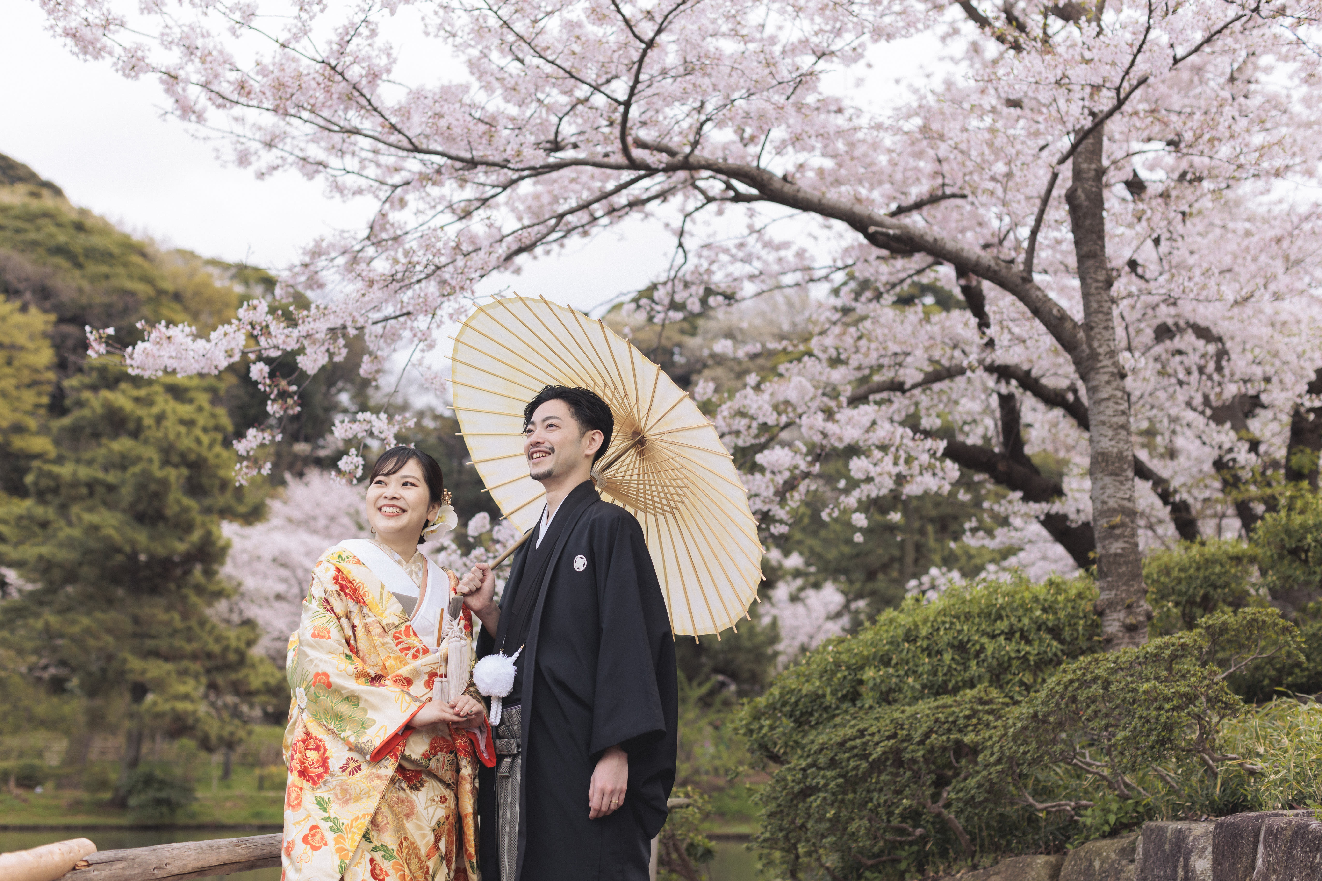 本格日本庭園を再現したスタジオで撮る 和装の結婚写真