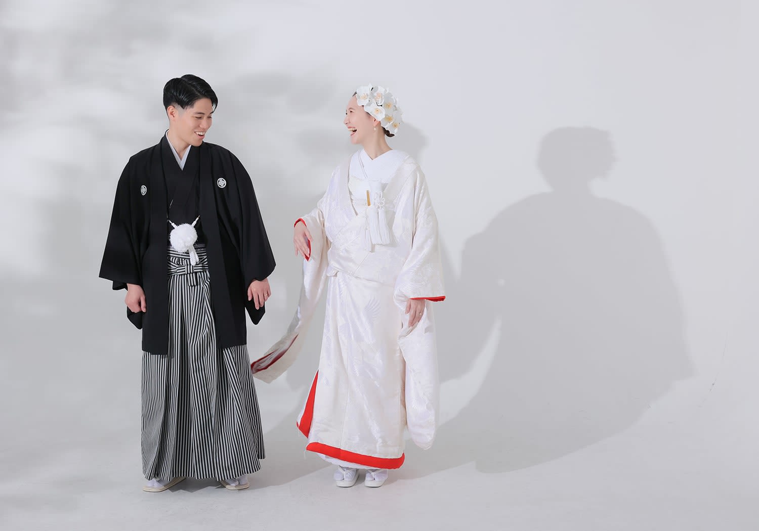 新宿店の本格的な茶室スタジオで撮影する、和装の結婚写真