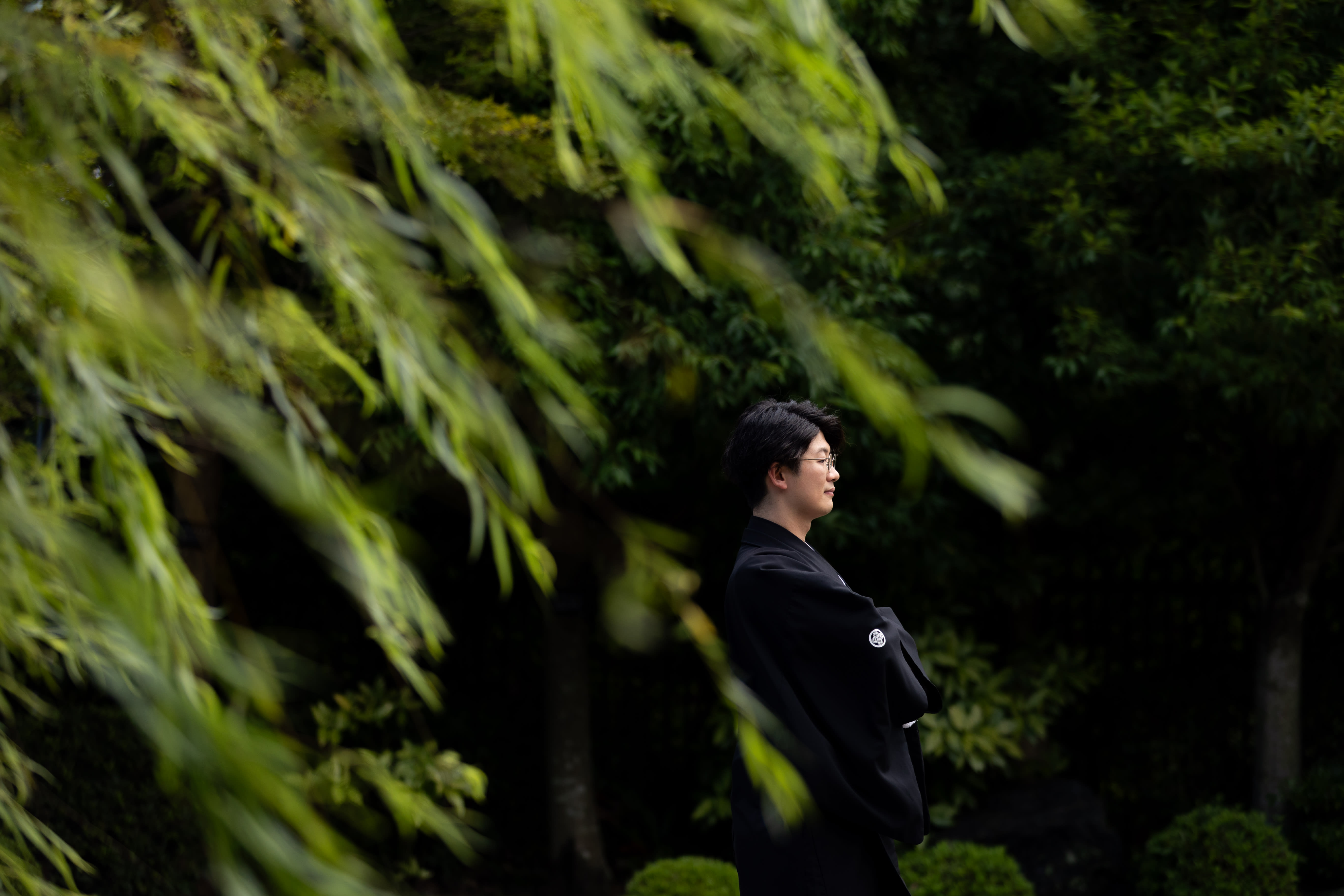 本格日本庭園を再現したスタジオで撮る 和装の結婚写真