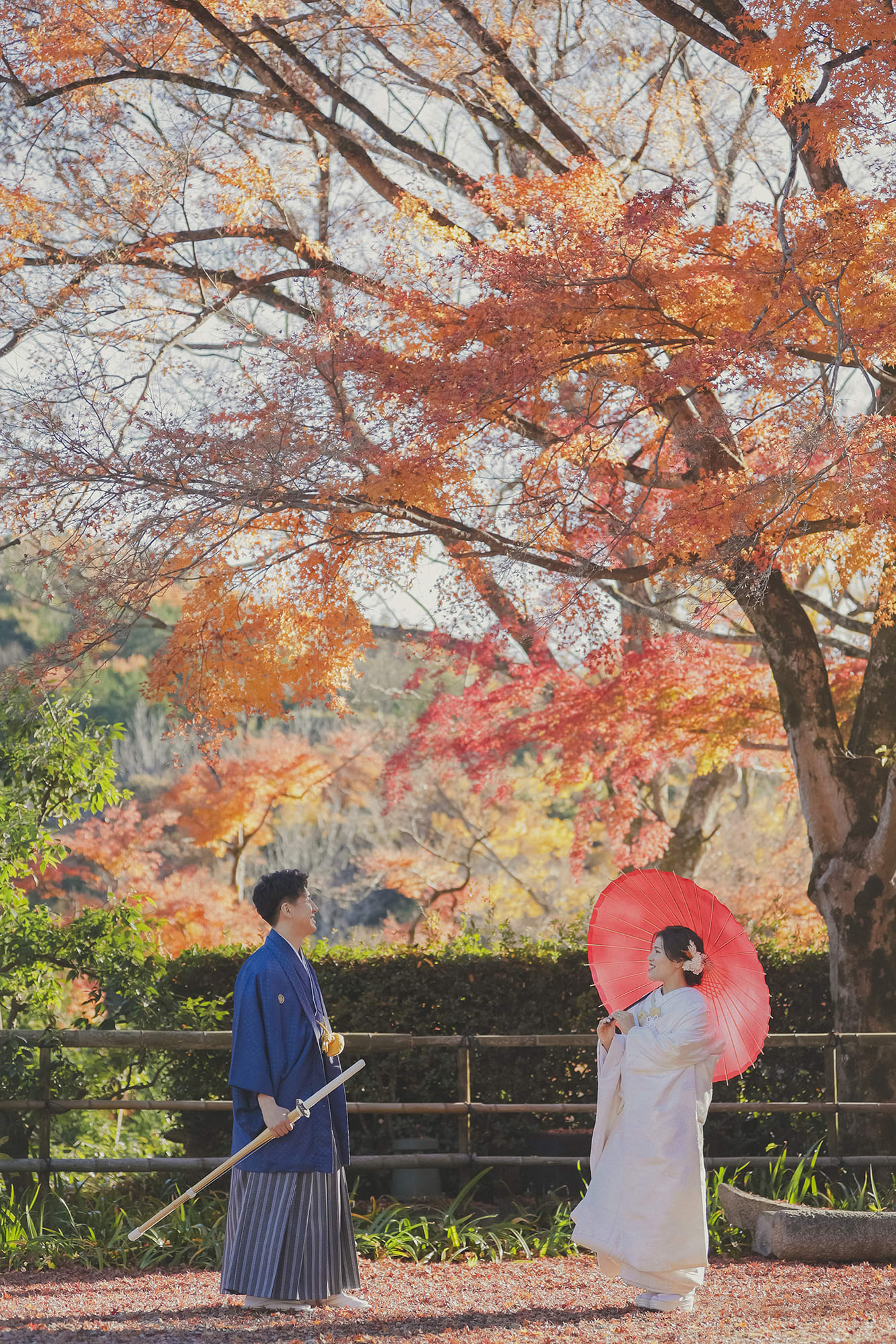 本格日本庭園を再現したスタジオで撮る 和装の結婚写真