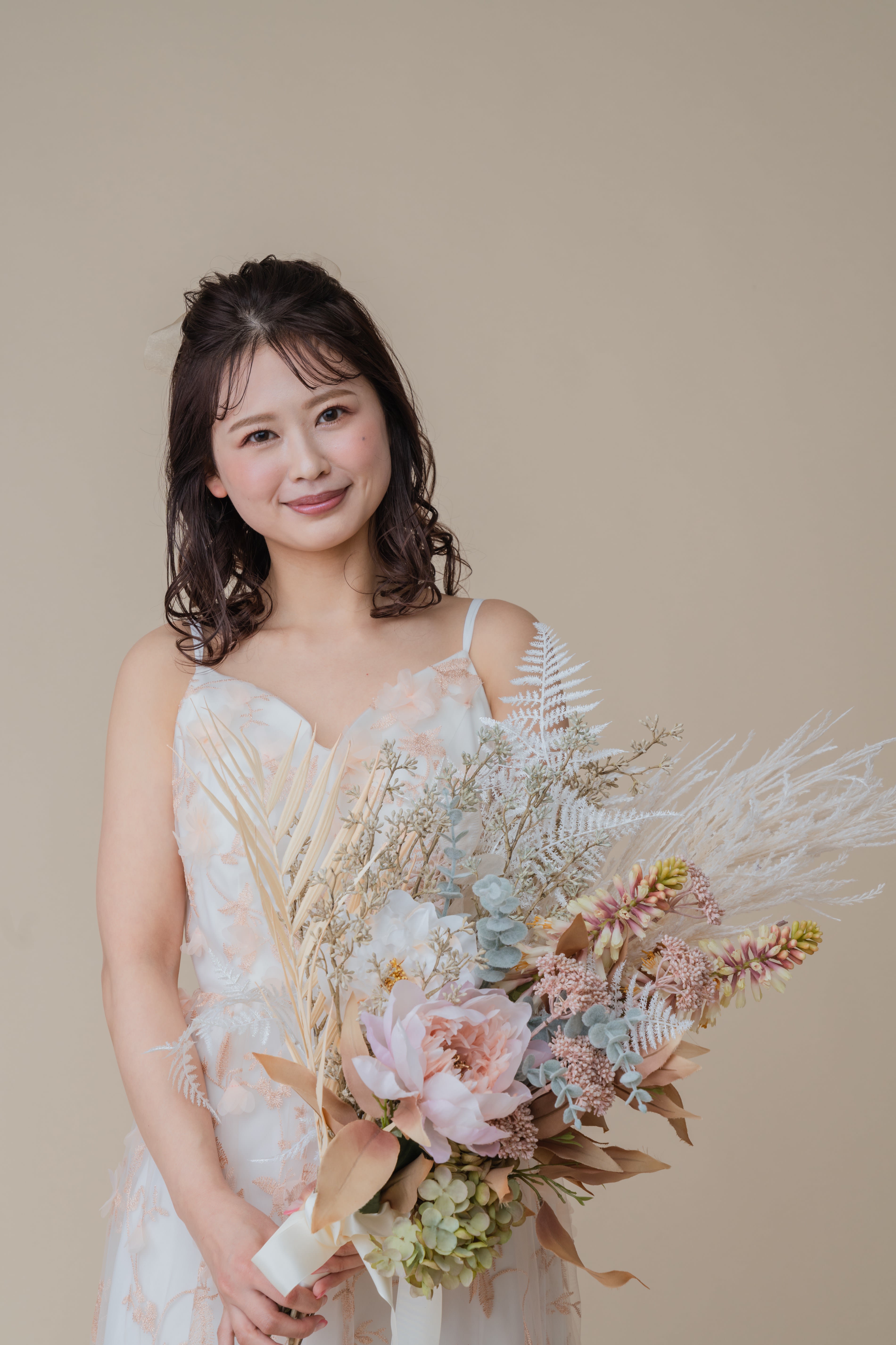 一生に一度の最高の瞬間を形に 人それぞれ個性があります。 その素敵な個性を大切にしつつ、ヘアメイクとして形に残せたらと思っています。 「普段お化粧をしないから、どんなヘアメイクを頼んだらいいのかな・・」 と思っていらっしゃる方は、私にお任せください。 今までに1番可愛く綺麗な花嫁姿にします。 美容師、式場、広告関係のヘアメイクの経験があるのでお気軽になんでもご相談くださいませ。 九州宮崎出身・1児のママです🌴 お喋り好きなのでお支度中でも楽しくお話ししましょう♪