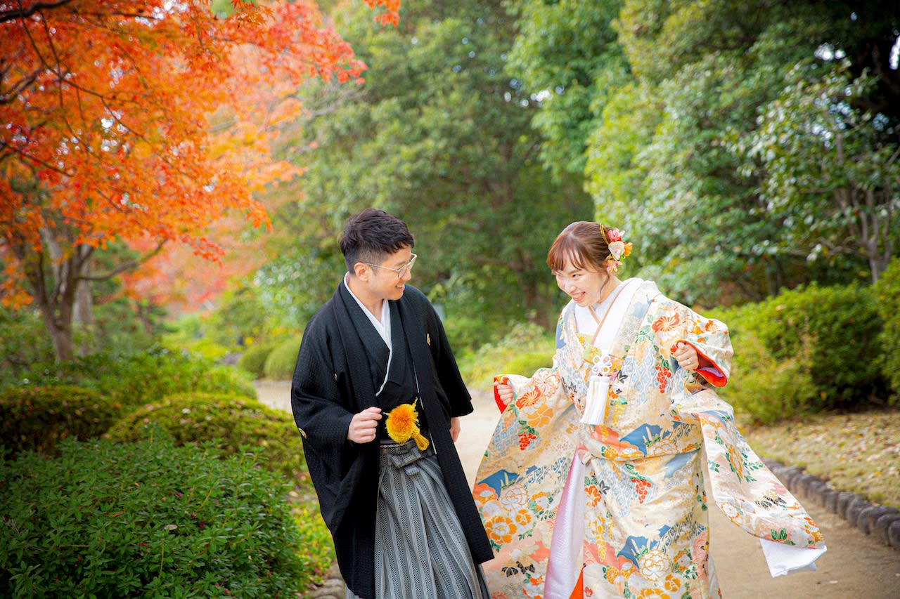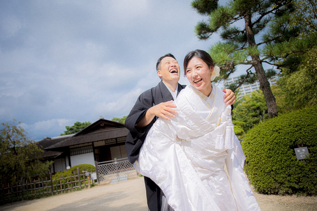 本格日本庭園を再現したスタジオで撮る 和装の結婚写真