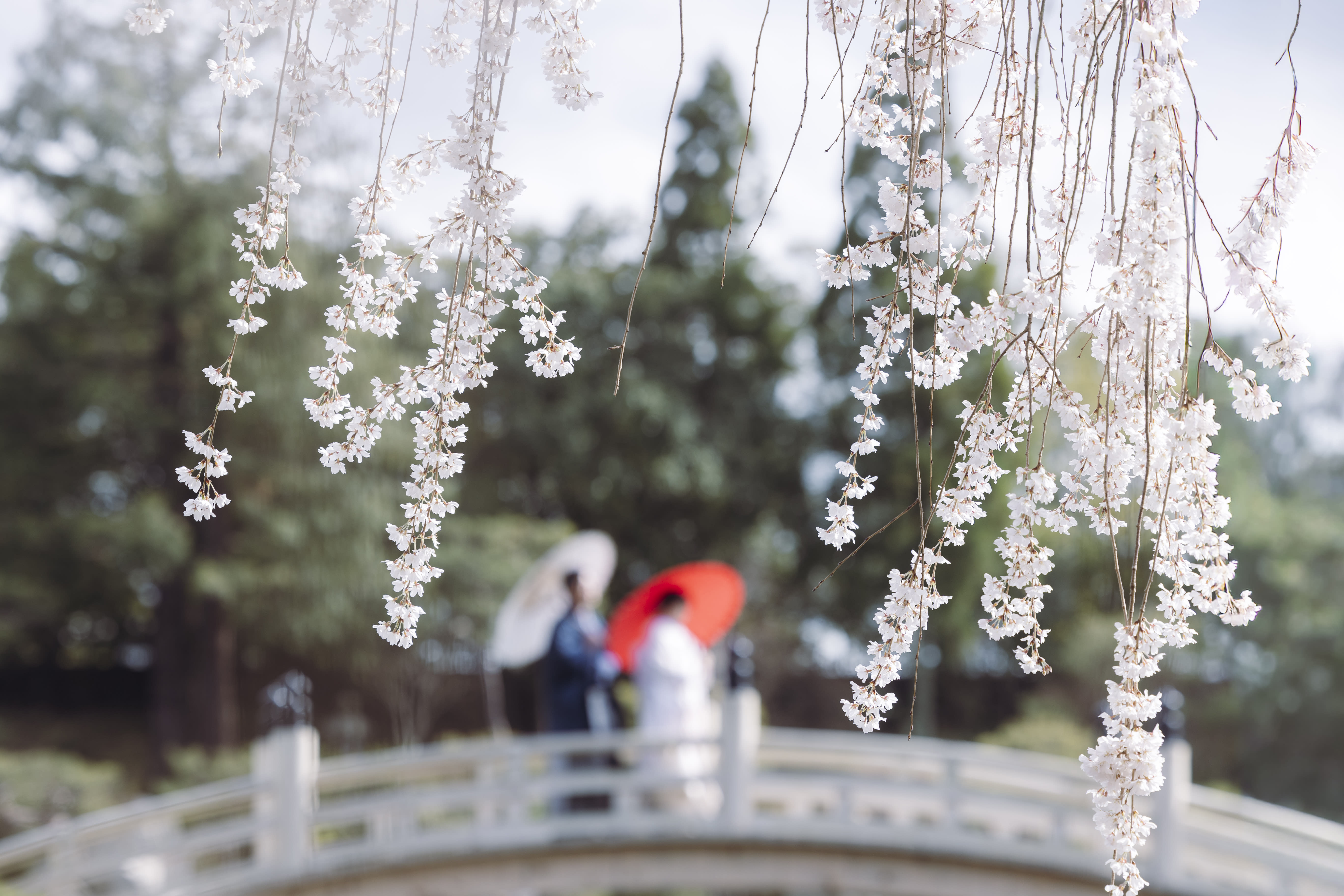 本格日本庭園を再現したスタジオで撮る 和装の結婚写真