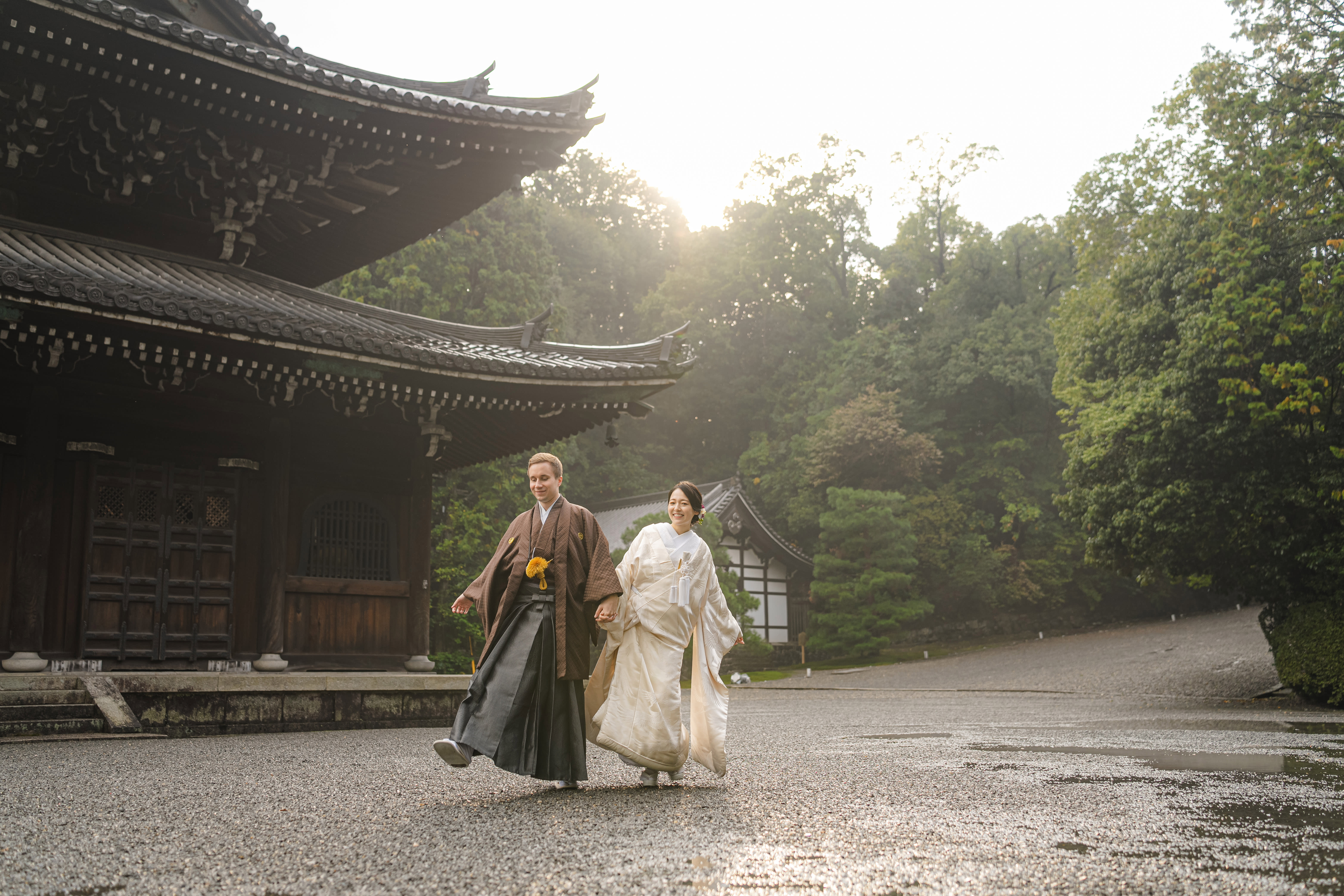 本格日本庭園を再現したスタジオで撮る 和装の結婚写真