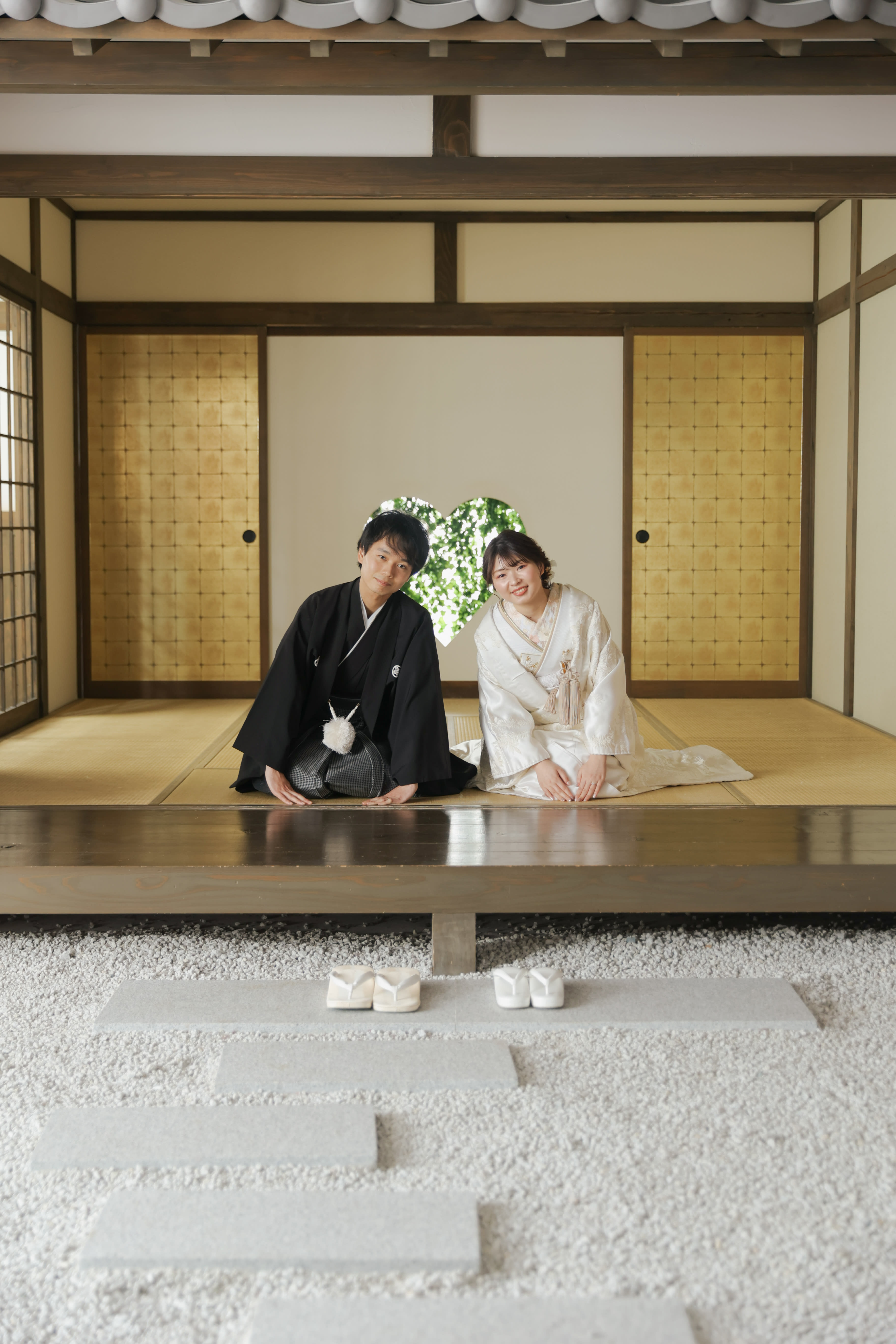 本格日本庭園を再現したスタジオで撮る 和装の結婚写真
