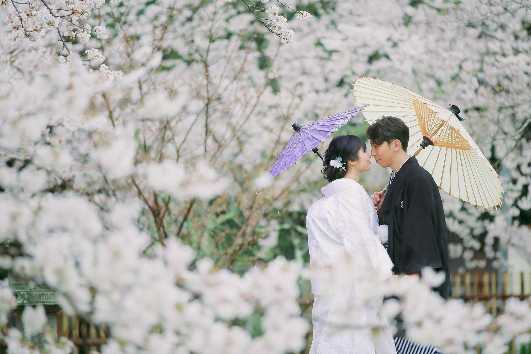 本格日本庭園を再現したスタジオで撮る 和装の結婚写真