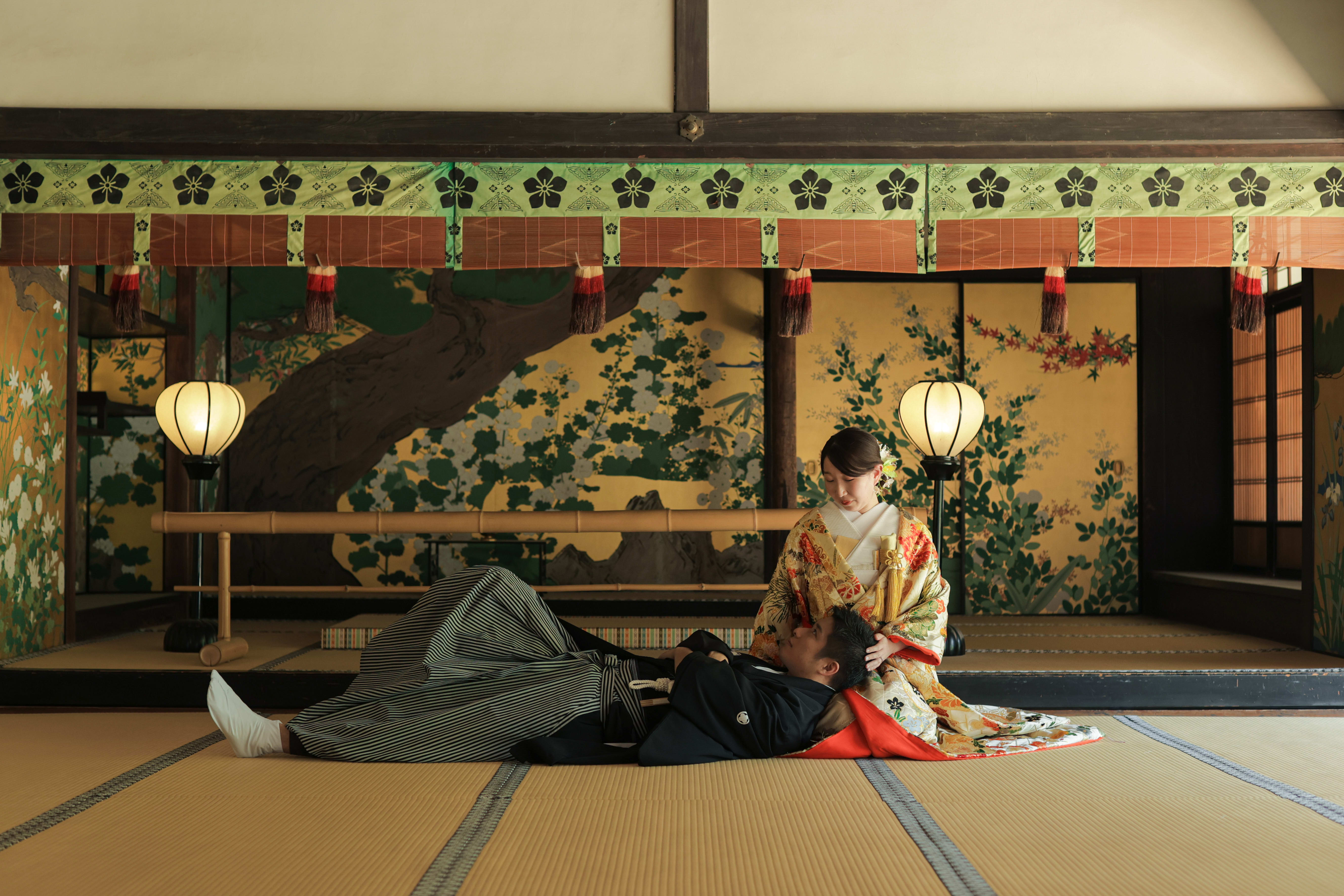 本格日本庭園を再現したスタジオで撮る 和装の結婚写真