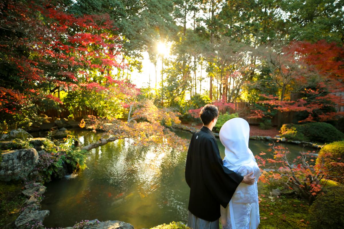 本格日本庭園を再現したスタジオで撮る 和装の結婚写真