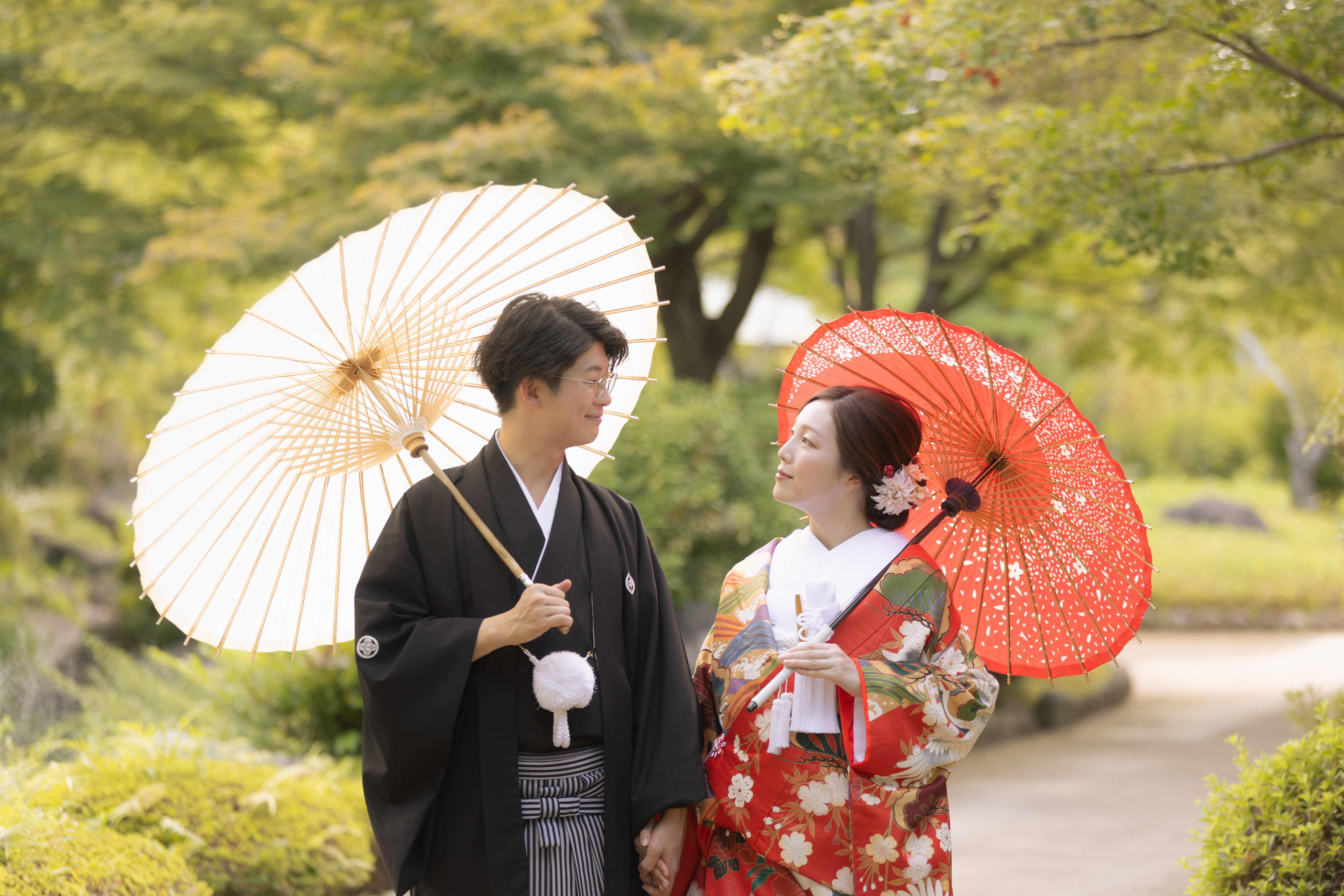 本格日本庭園を再現したスタジオで撮る 和装の結婚写真