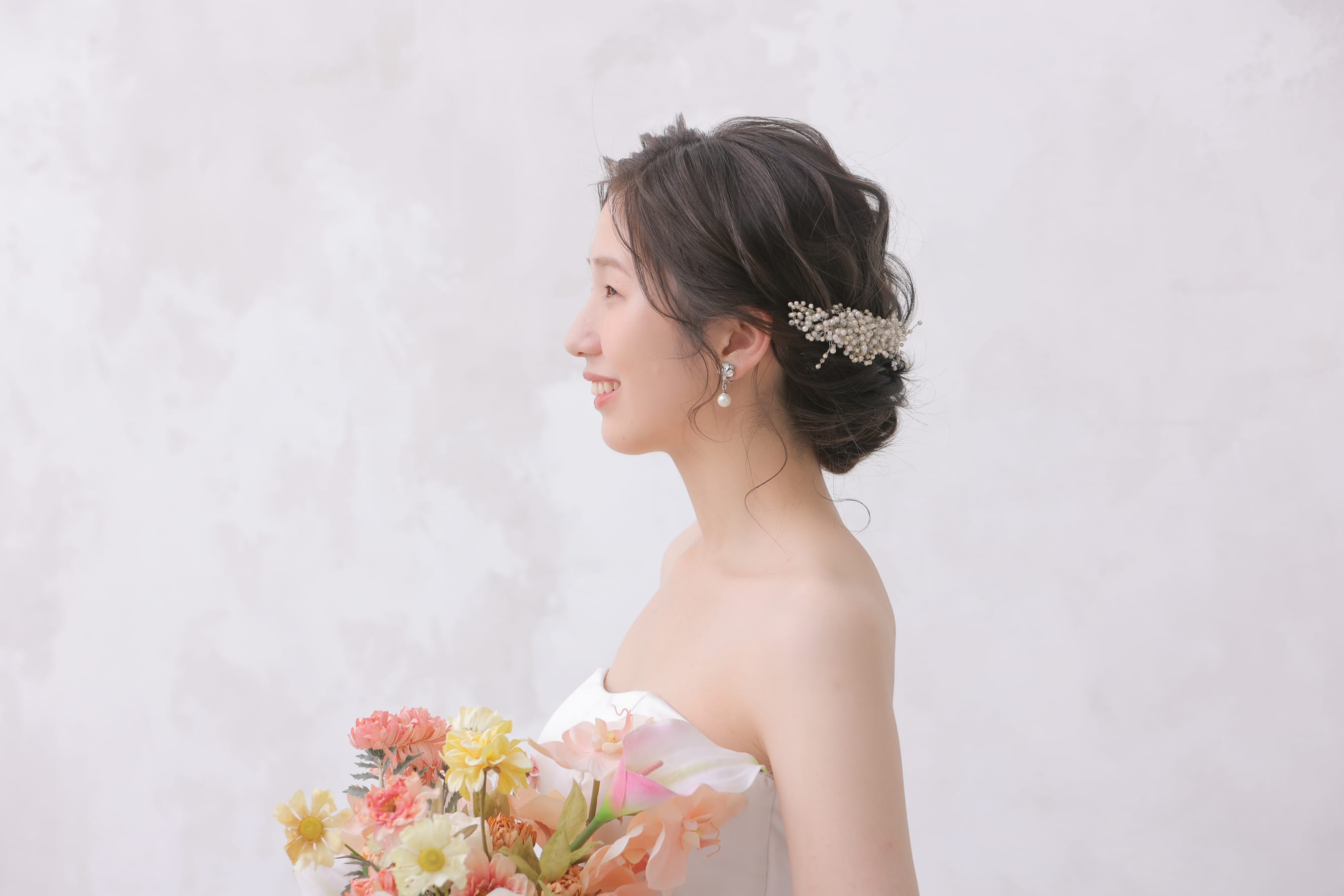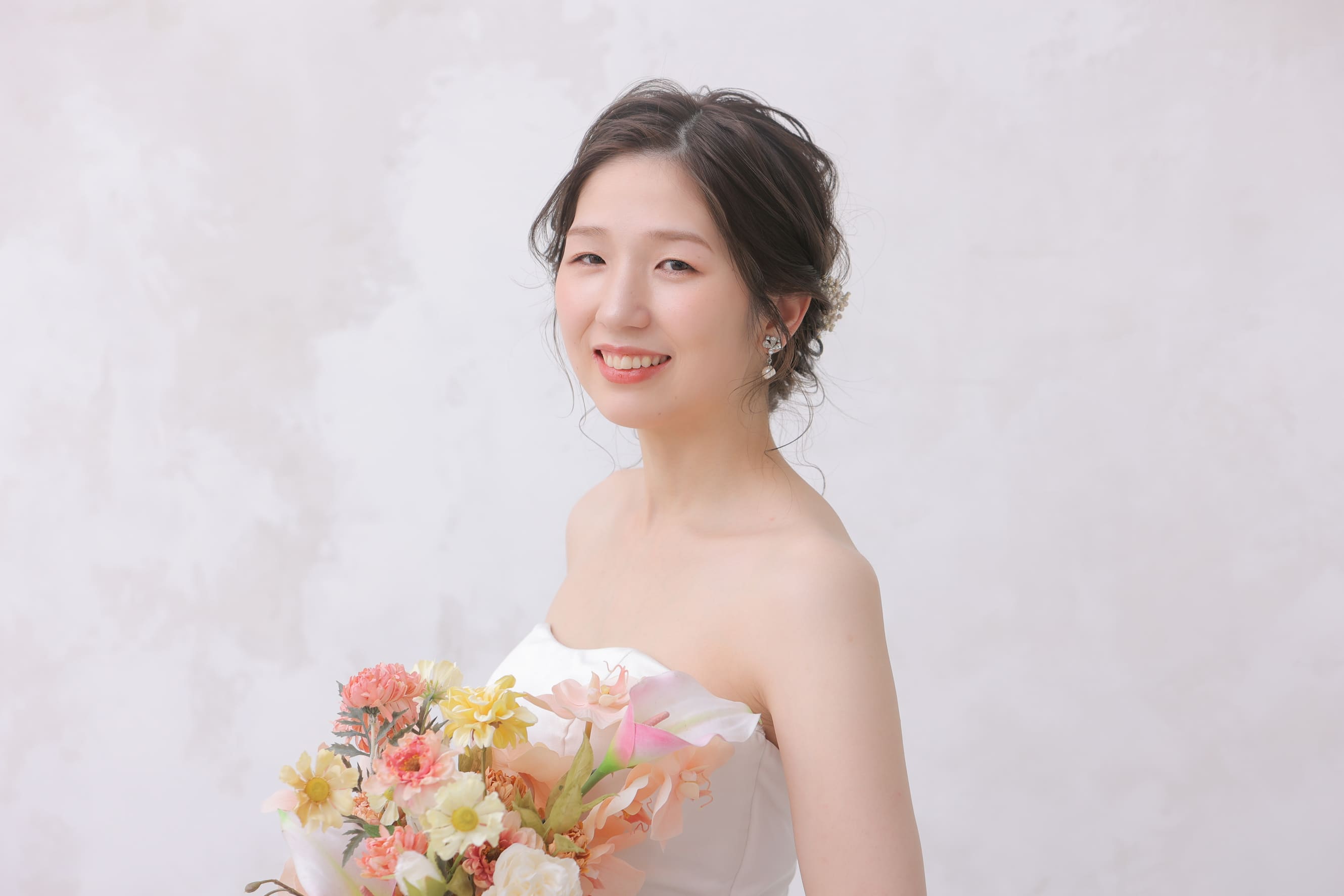 いくつになっても、一生に一度の瞬間を懐かしんでもらいたいから 新婦様に寄り添って、”自分らしさ”を大切にしたご提案を心掛けています🕊️ 衣装合わせから当日まで、楽しい時間を一緒に過ごしていただけたら嬉しいです🙌 美容師として7年の経験を積み、ブライダルの世界に飛び込みたくさんの花嫁さまを担当してきました👰♀️💐 明るく親しみやすい性格なので、どんなことでも気軽にご相談ください。 お二人の特別な思い出のお手伝いができるのを楽しみにしています。 お支度から楽しくリラックスしていきましょ〜 ※生花を使用したアレンジもご相談ください