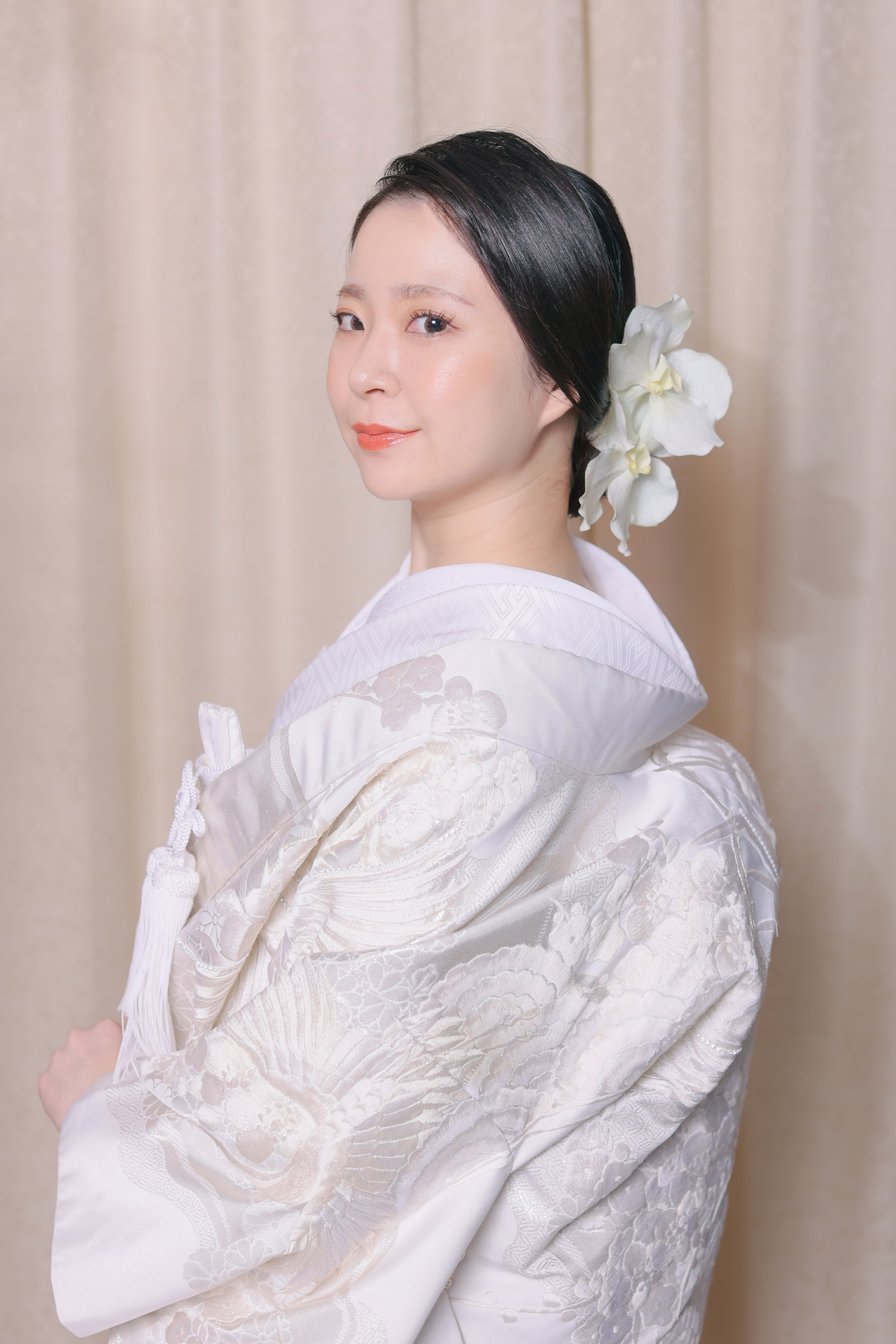 新郎新婦様お二人の個性やお好みに合ったヘアメイク、お衣装選び、小物アレンジをご提案させて頂きます。 新婦様の柔らかい雰囲気を引き出せるようなヘアメイクを心がけております。 一級着付け技能士資格も取得し、着付けの技術にこだわって新郎新婦様のお着付けをさせていただいております!! 美容師の経験を積み、現在のヘアメイクの仕事をさせていただいてます。 お二人らしさが残るウェディングフォトのサポートさせて頂きます!! どこの店舗でもご指名を承ります。 ヘアメイク歴 14年 美容師国家資格取得 一級着付け技能士資格取得