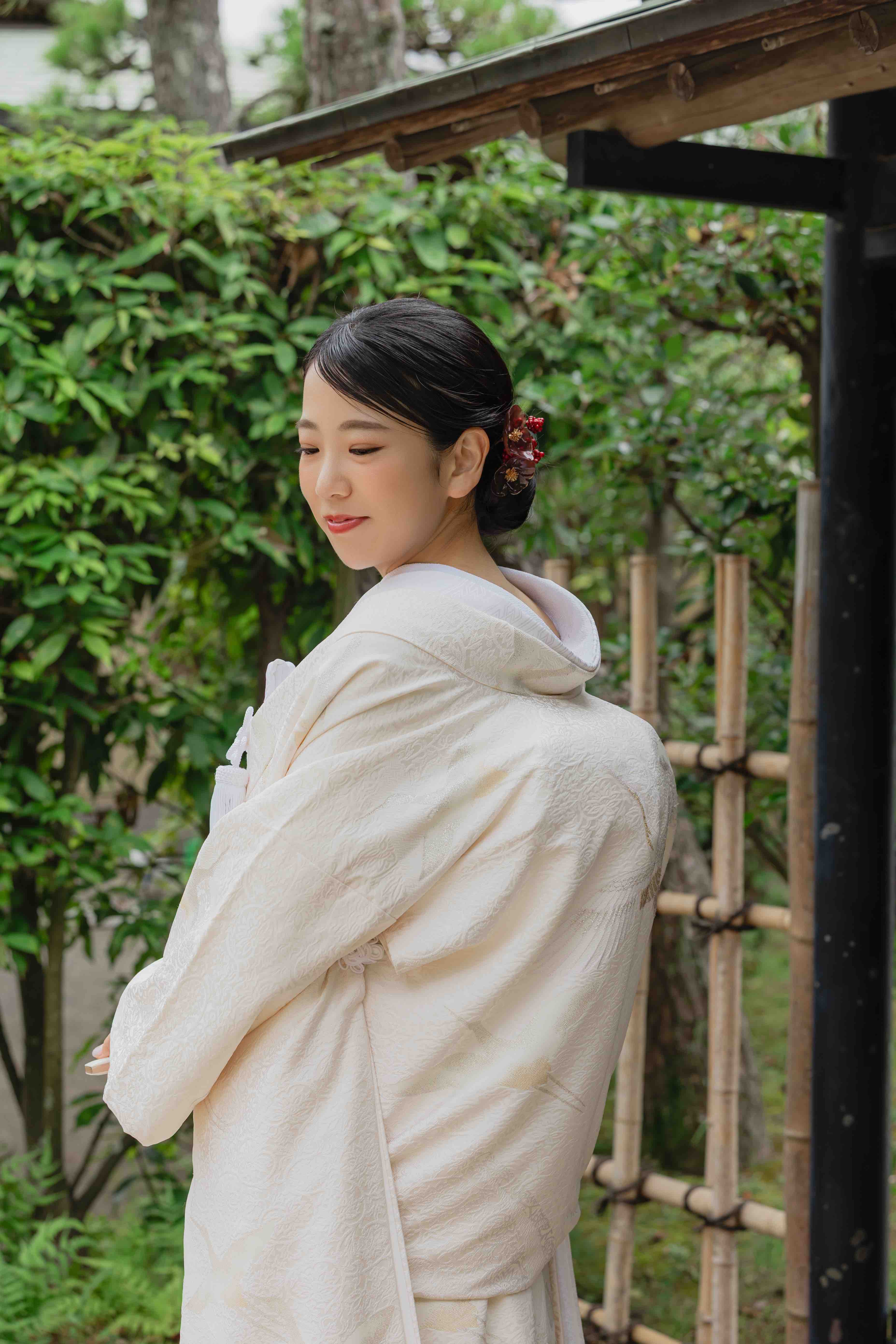 本格日本庭園を再現したスタジオで撮る 和装の結婚写真