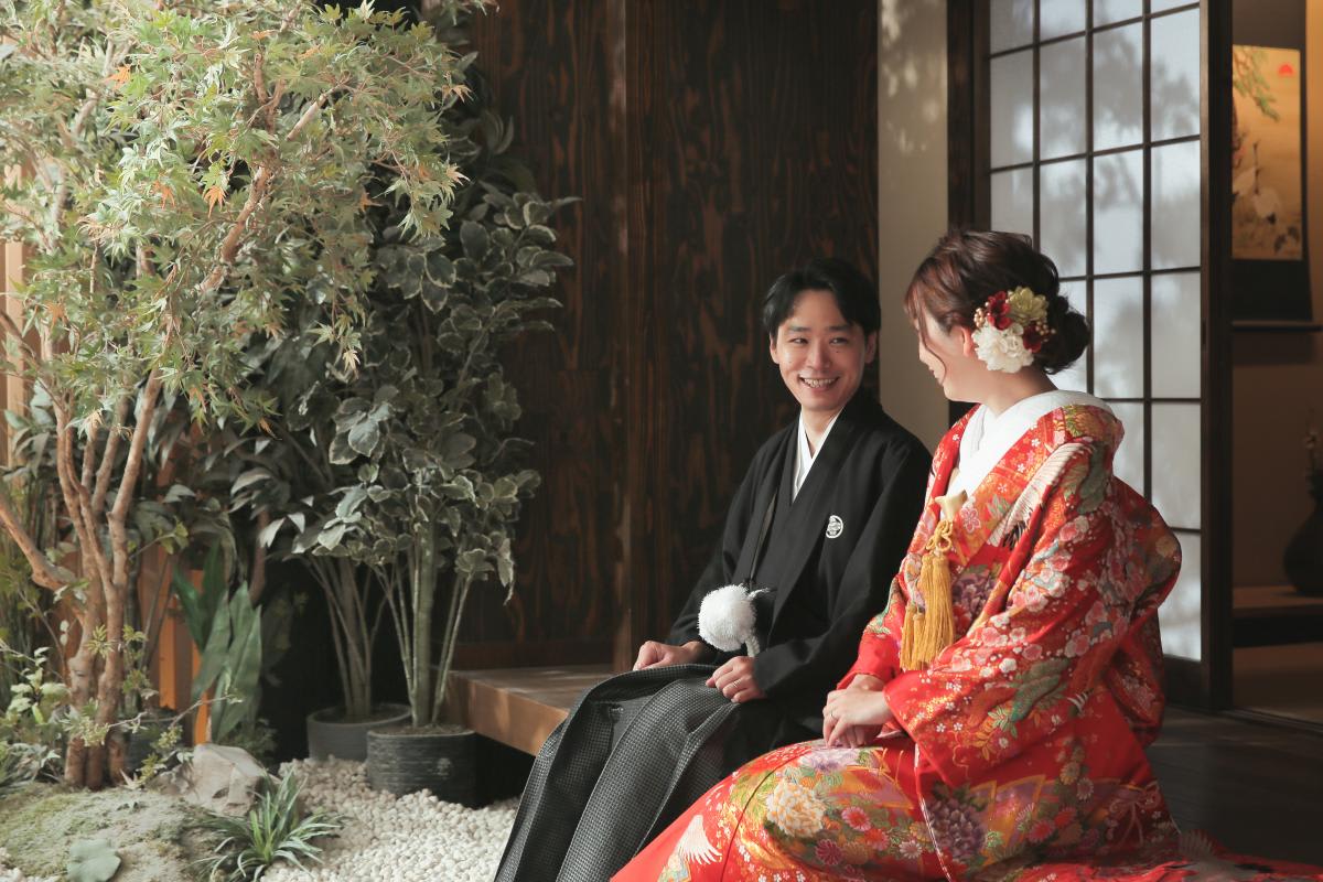 本格日本庭園を再現したスタジオで撮る 和装の結婚写真