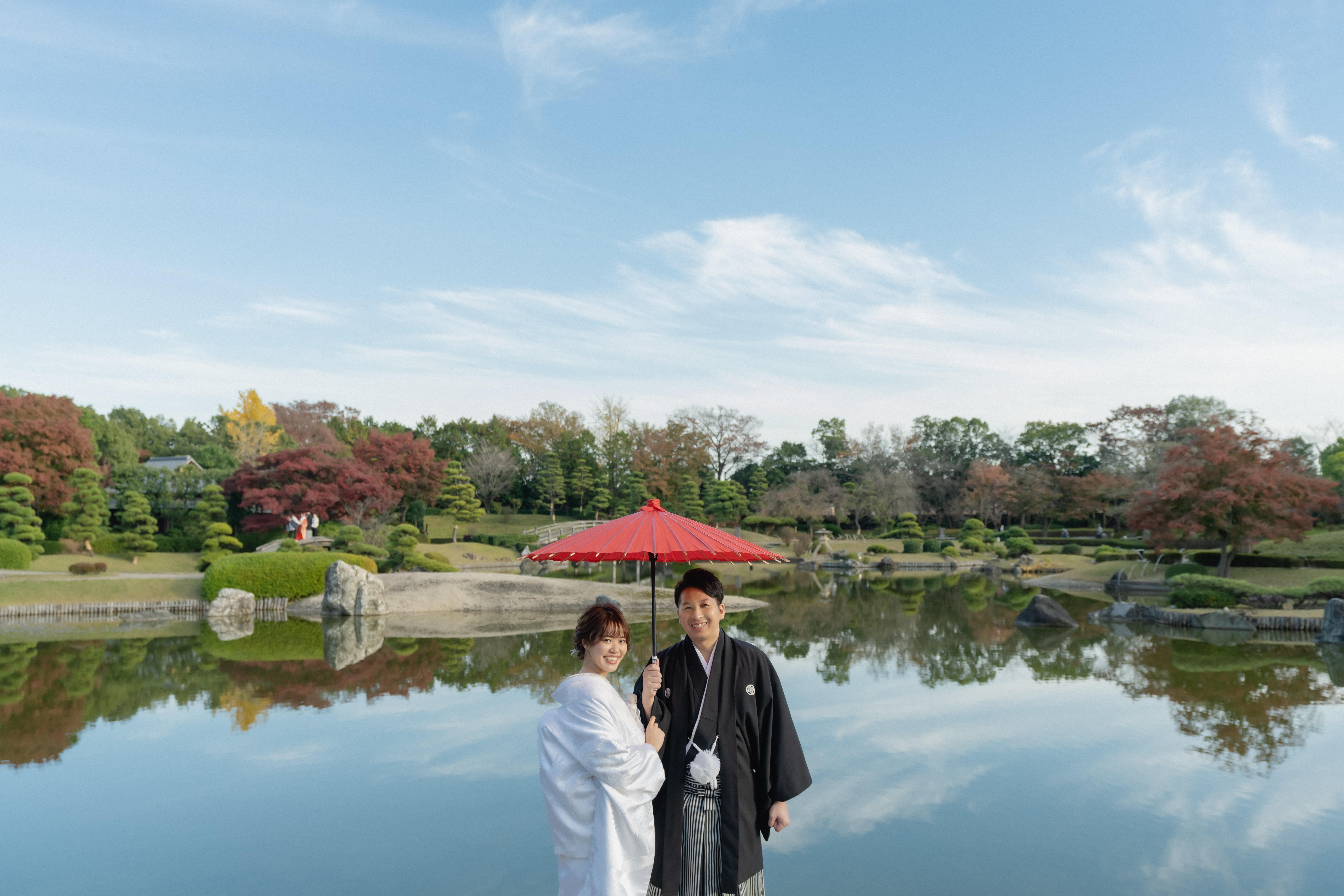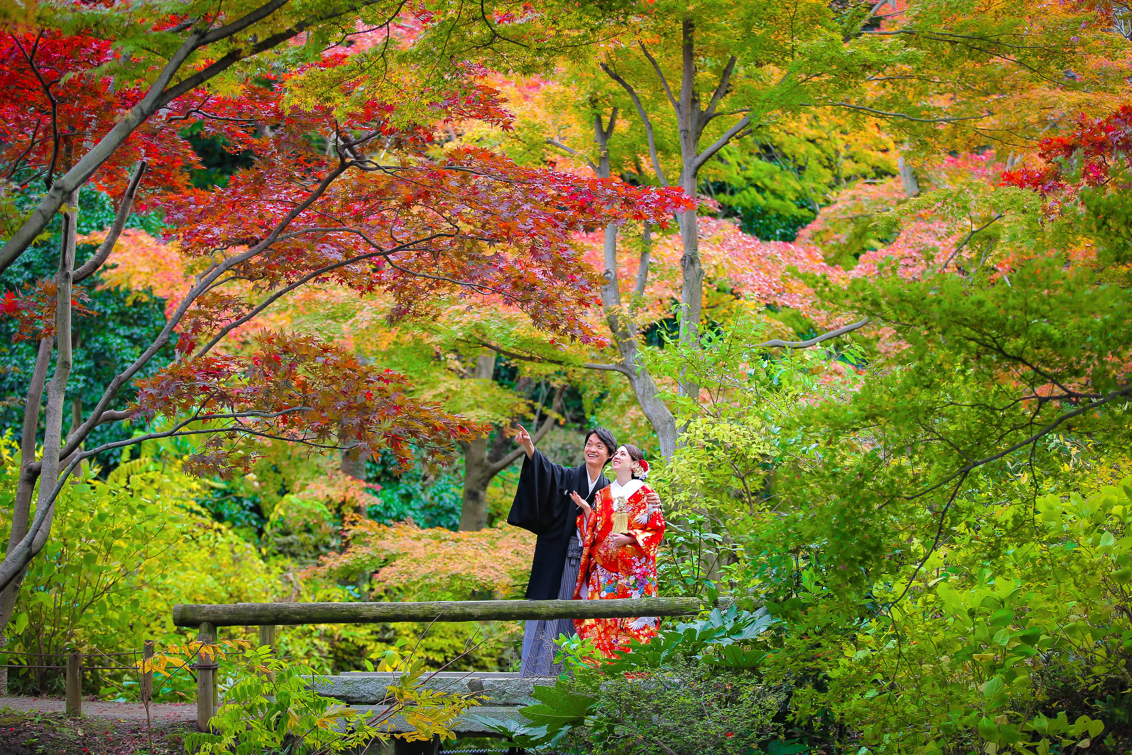 本格日本庭園を再現したスタジオで撮る 和装の結婚写真