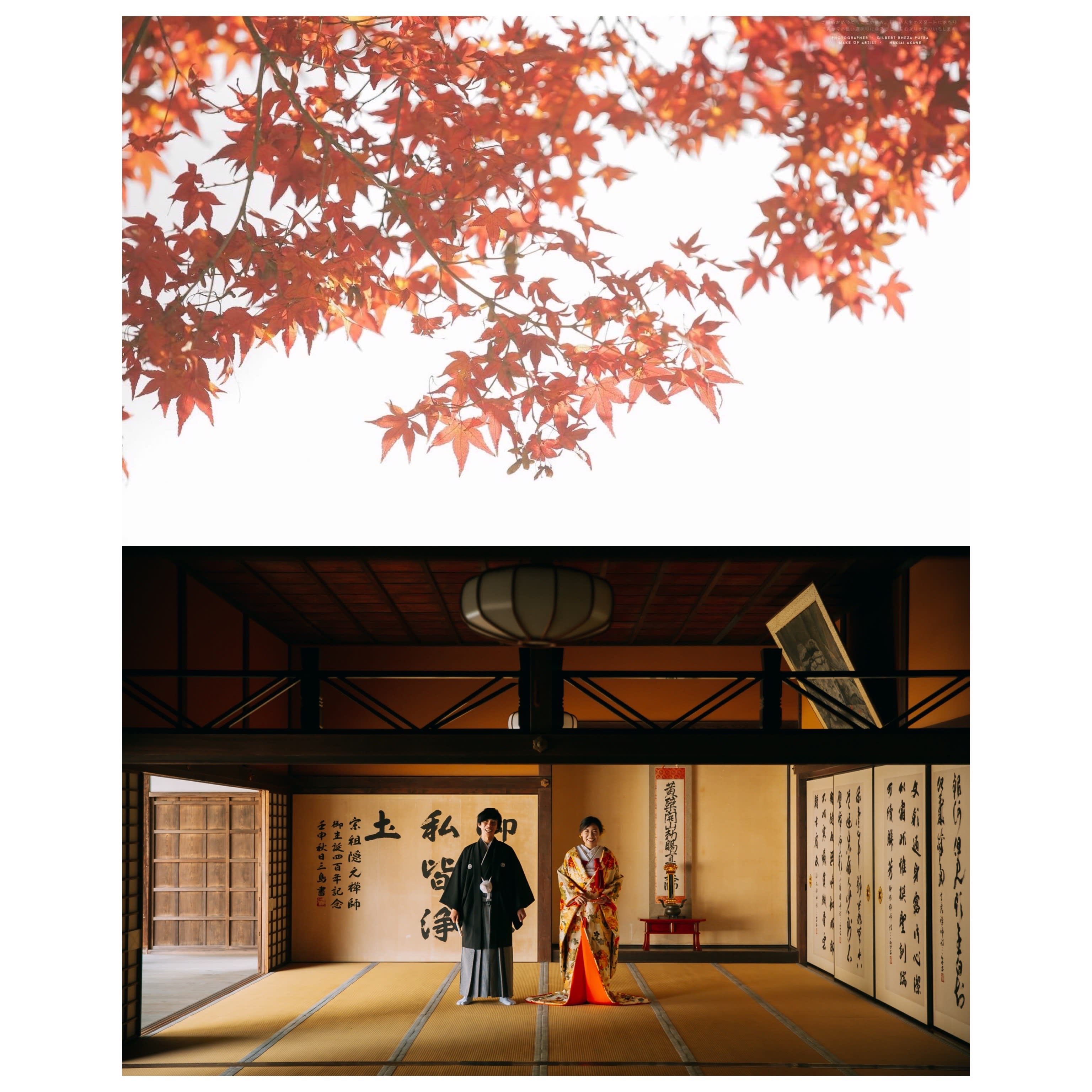 本格日本庭園を再現したスタジオで撮る 和装の結婚写真