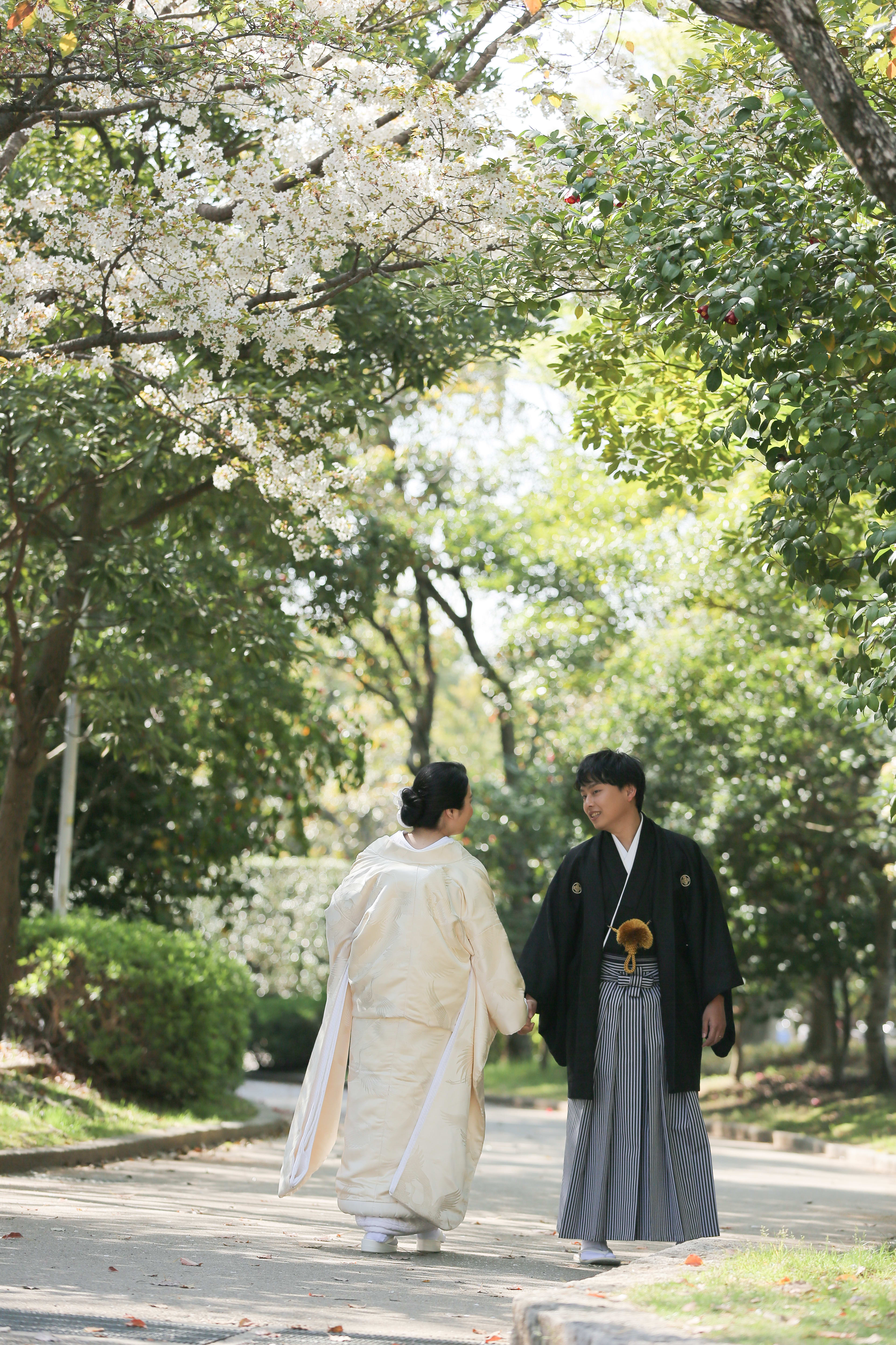 本格日本庭園を再現したスタジオで撮る 和装の結婚写真