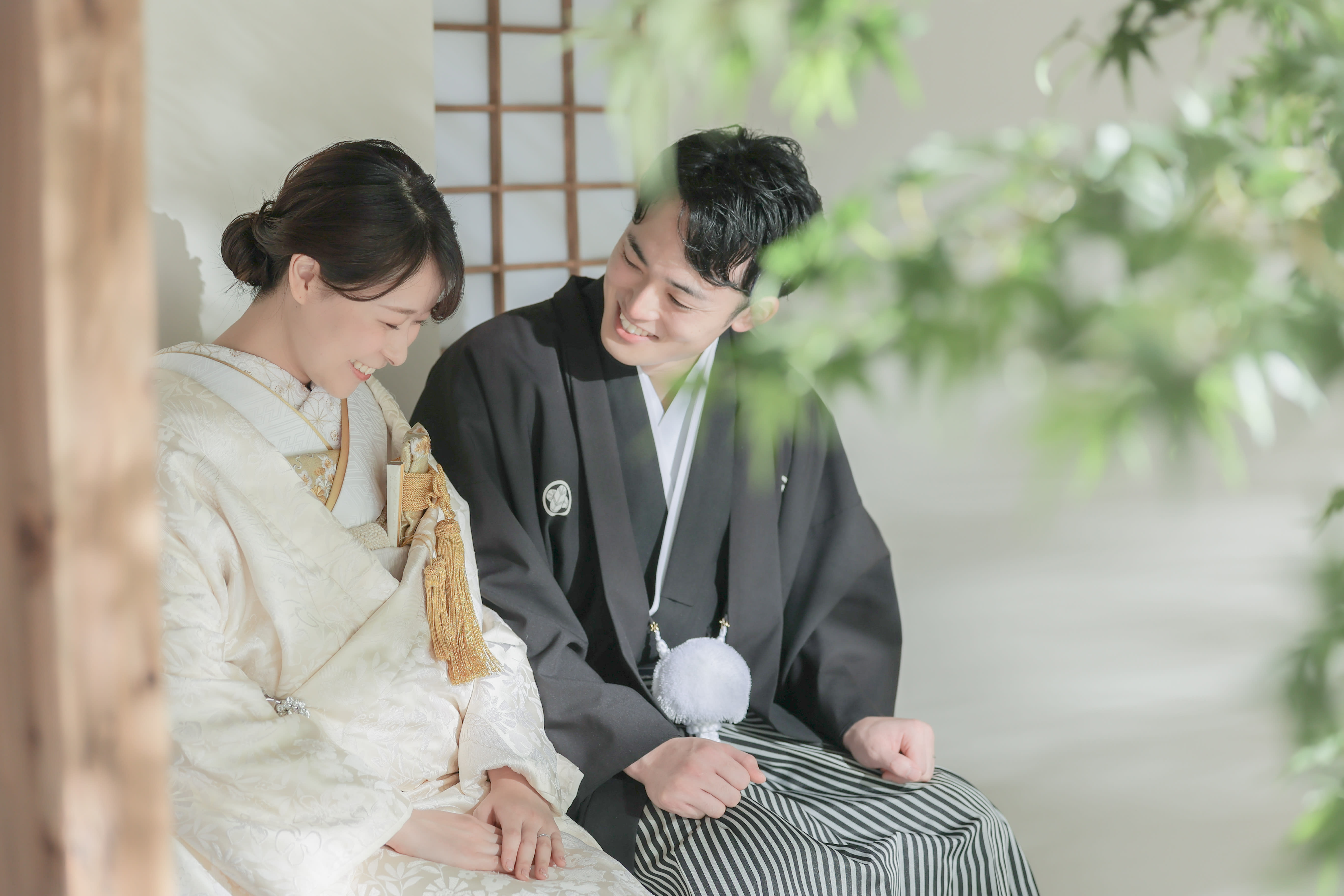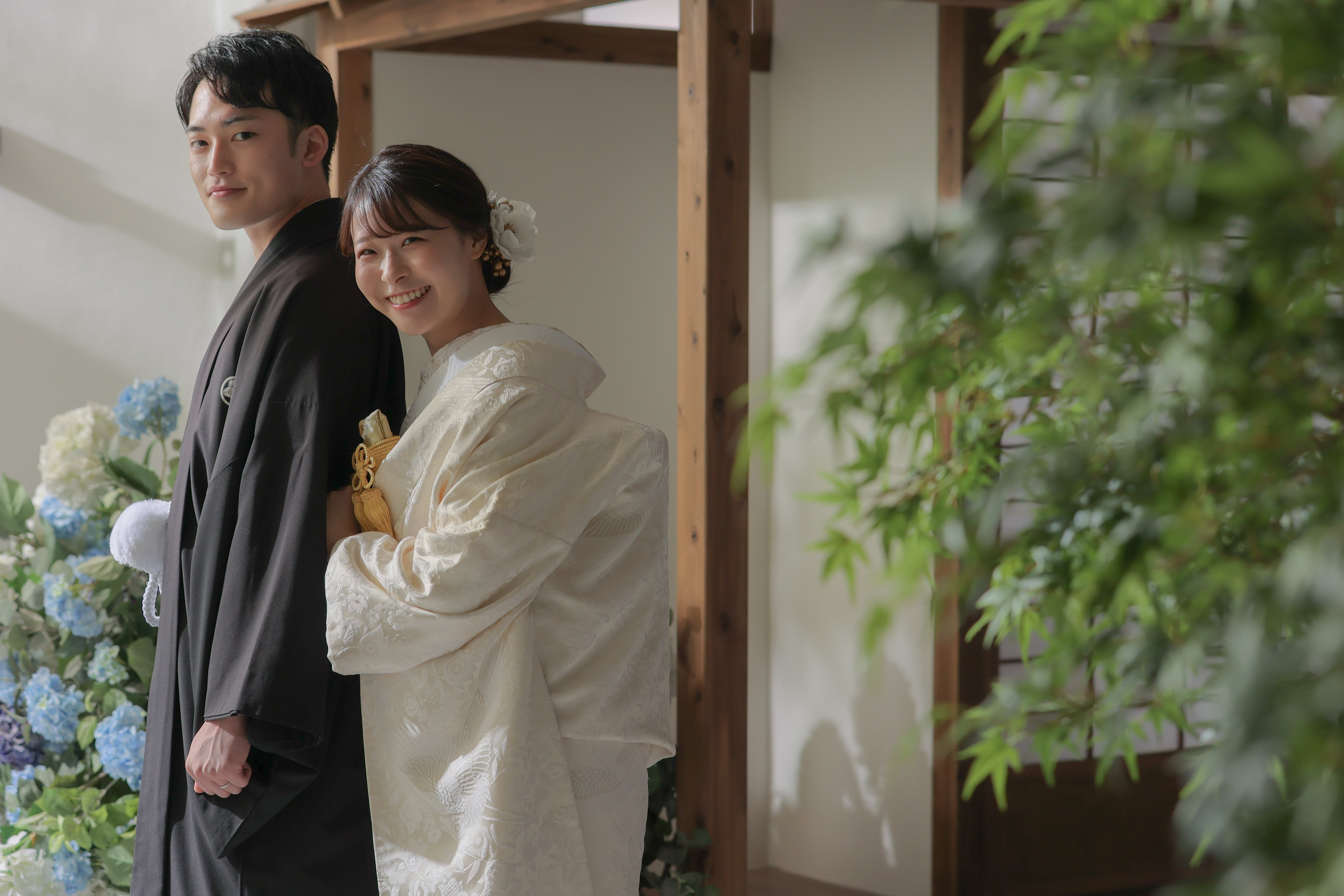 本格日本庭園を再現したスタジオで撮る 和装の結婚写真