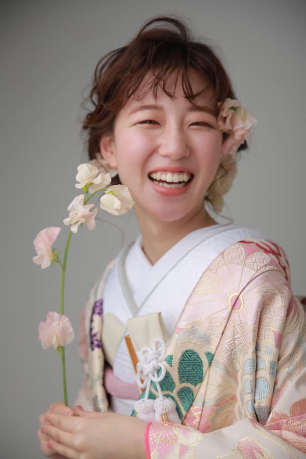 いくつになっても、一生に一度の瞬間を懐かしんでもらいたいから 新婦様に寄り添って、”自分らしさ”を大切にしたご提案を心掛けています🕊️ 衣装合わせから当日まで、楽しい時間を一緒に過ごしていただけたら嬉しいです🙌 美容師として7年の経験を積み、ブライダルの世界に飛び込みたくさんの花嫁さまを担当してきました👰♀️💐 明るく親しみやすい性格なので、どんなことでも気軽にご相談ください。 お二人の特別な思い出のお手伝いができるのを楽しみにしています。 お支度から楽しくリラックスしていきましょ〜 ※生花を使用したアレンジもご相談ください