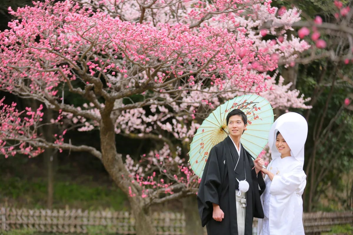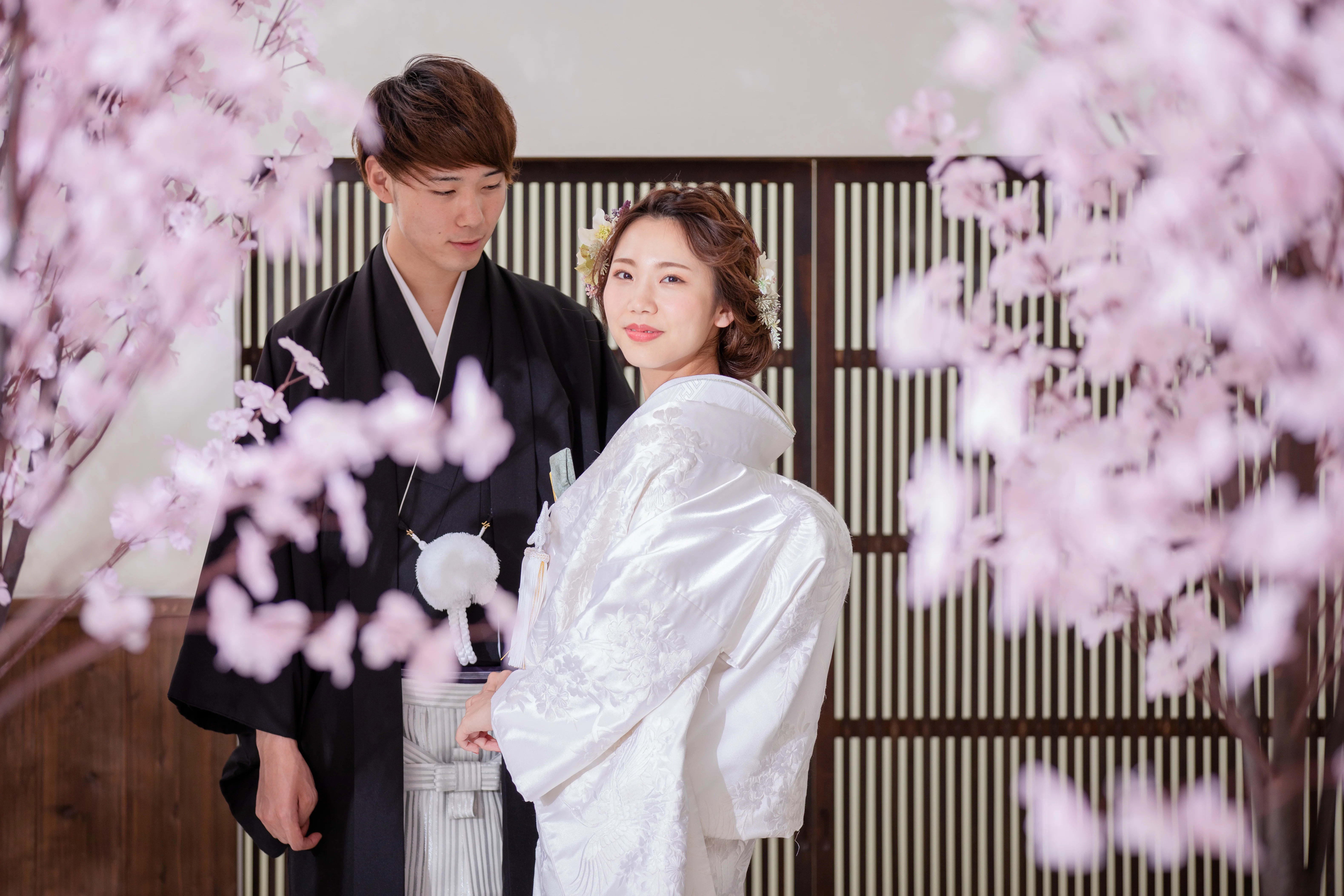 本格日本庭園を再現したスタジオで撮る 和装の結婚写真