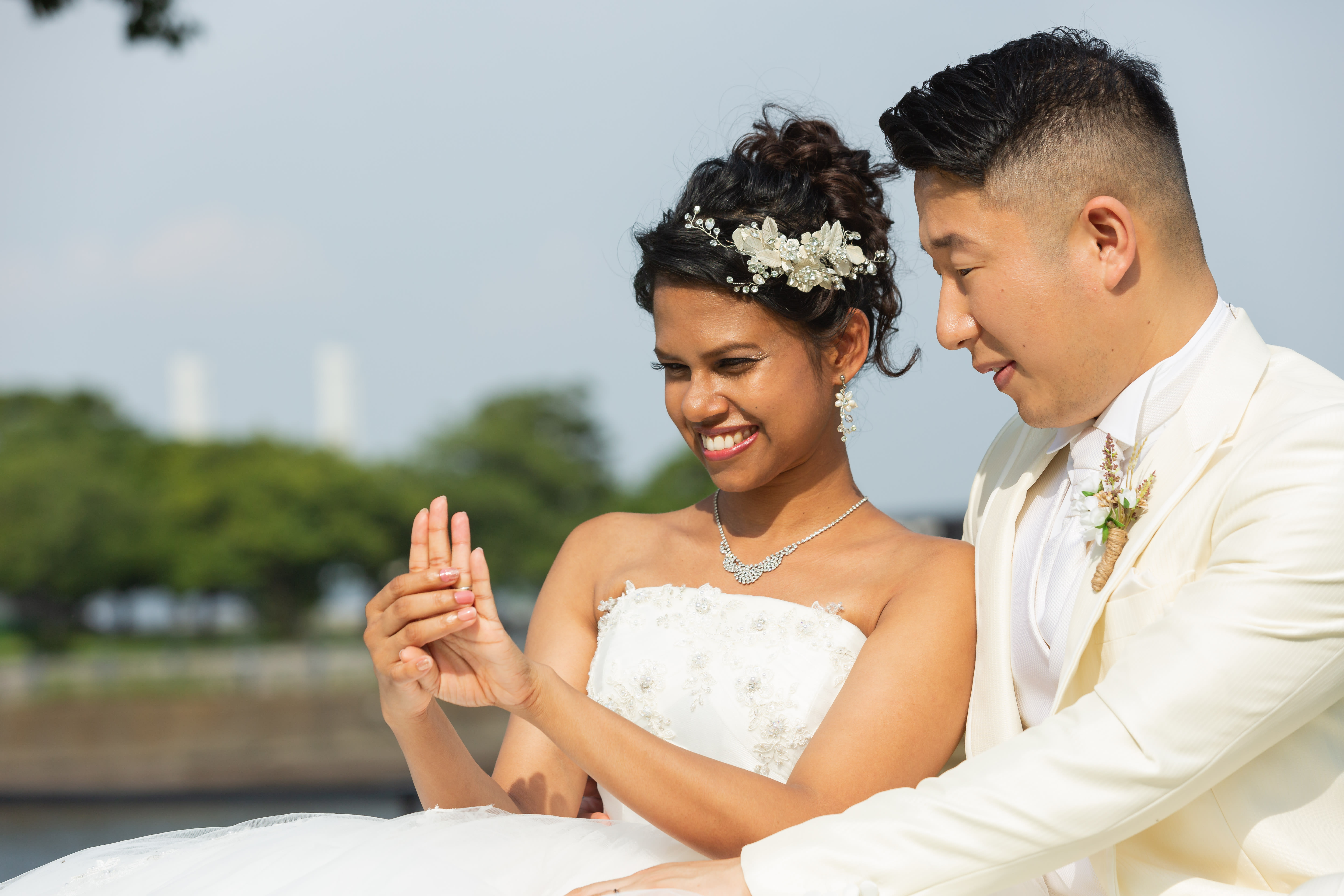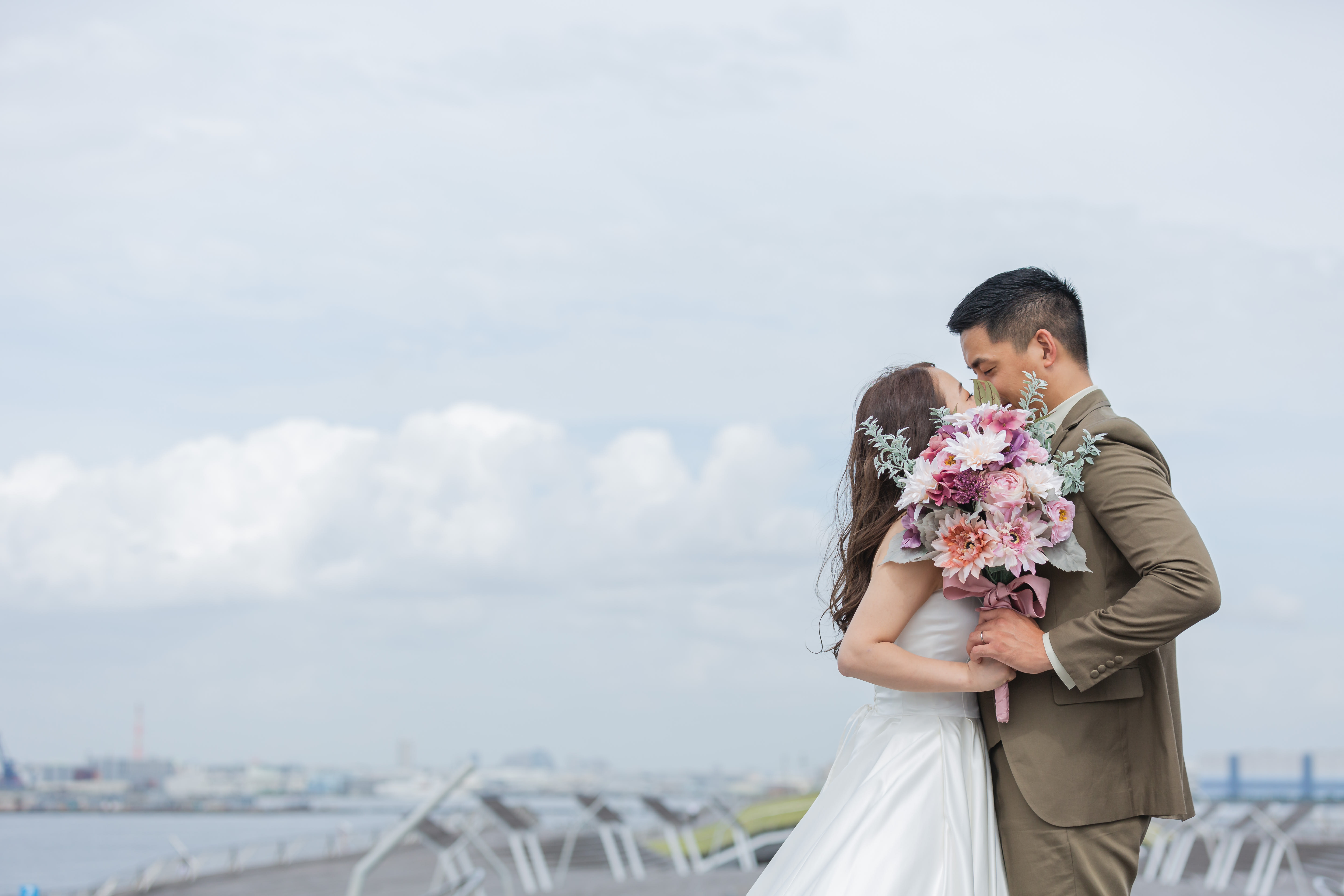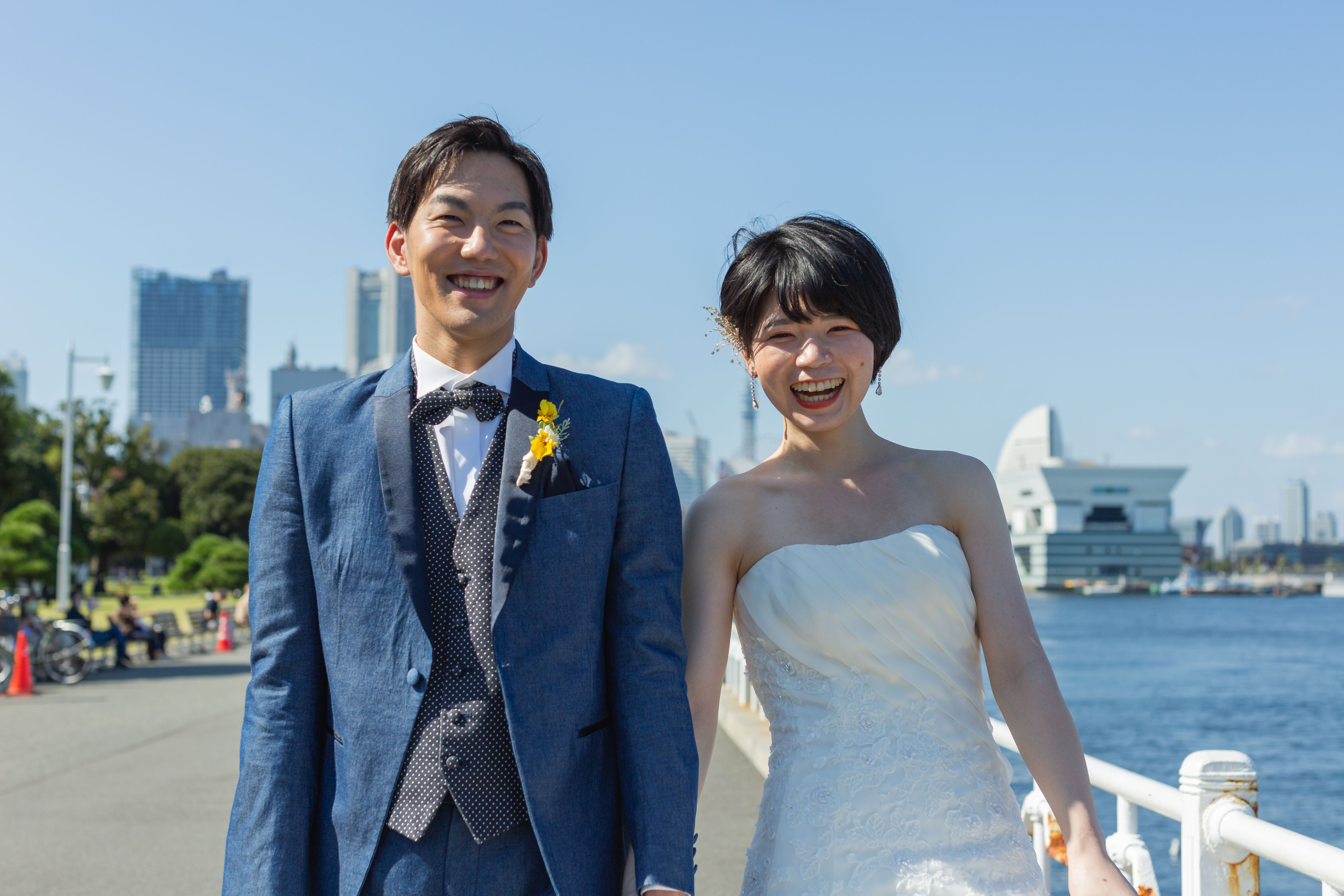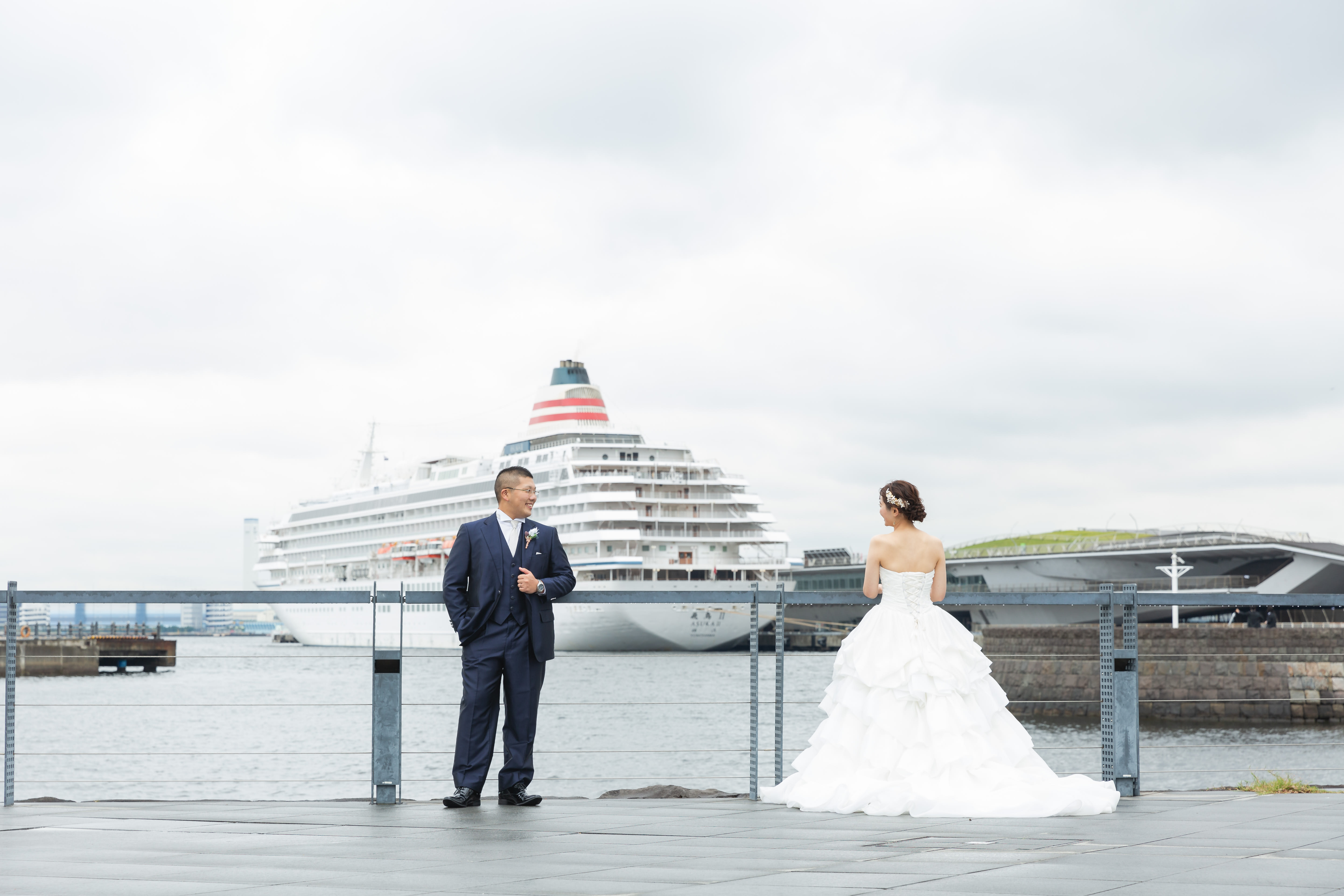 【横浜で記念日】汽笛が二人のスタートを祝う横浜のロケーションで美しい一枚を