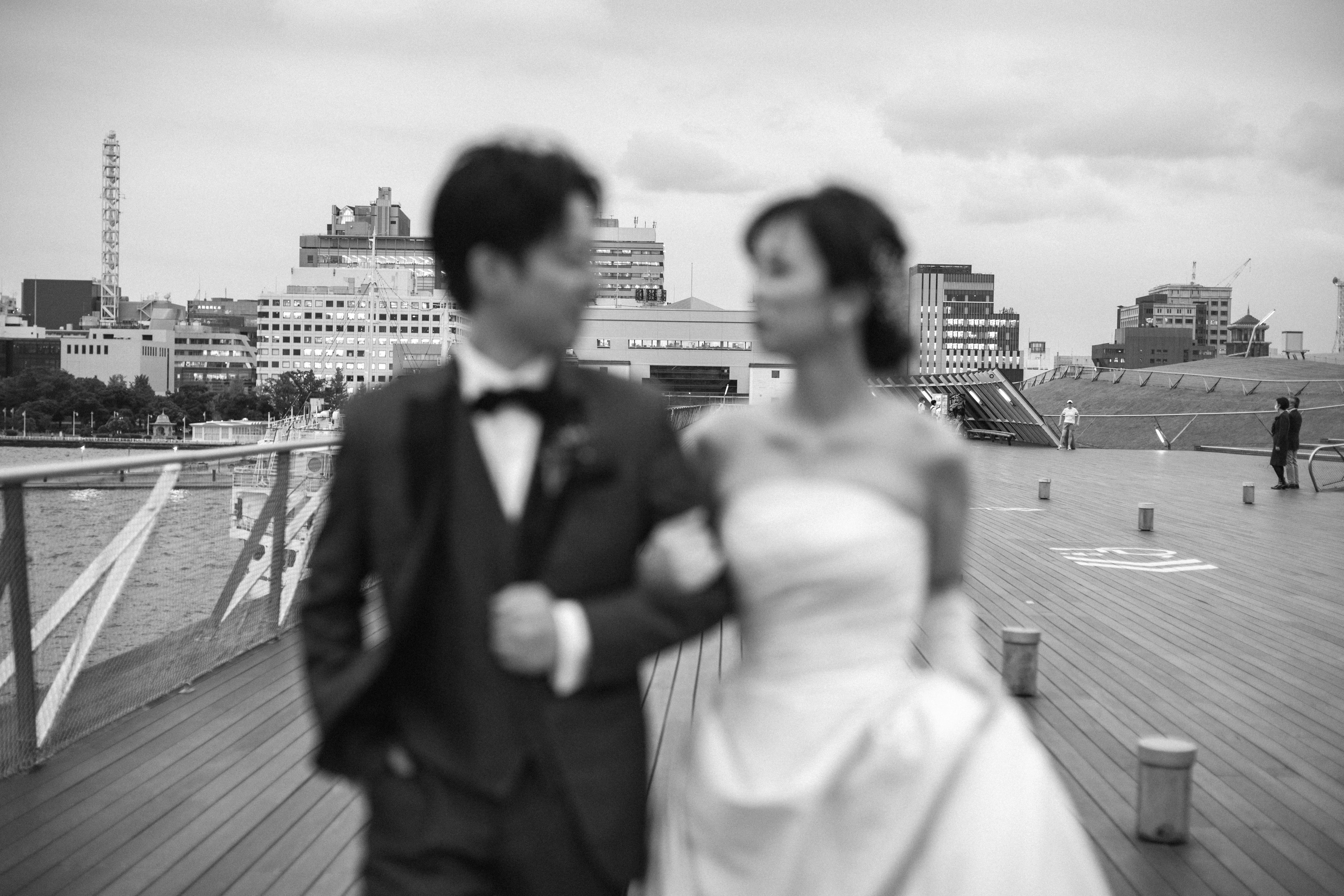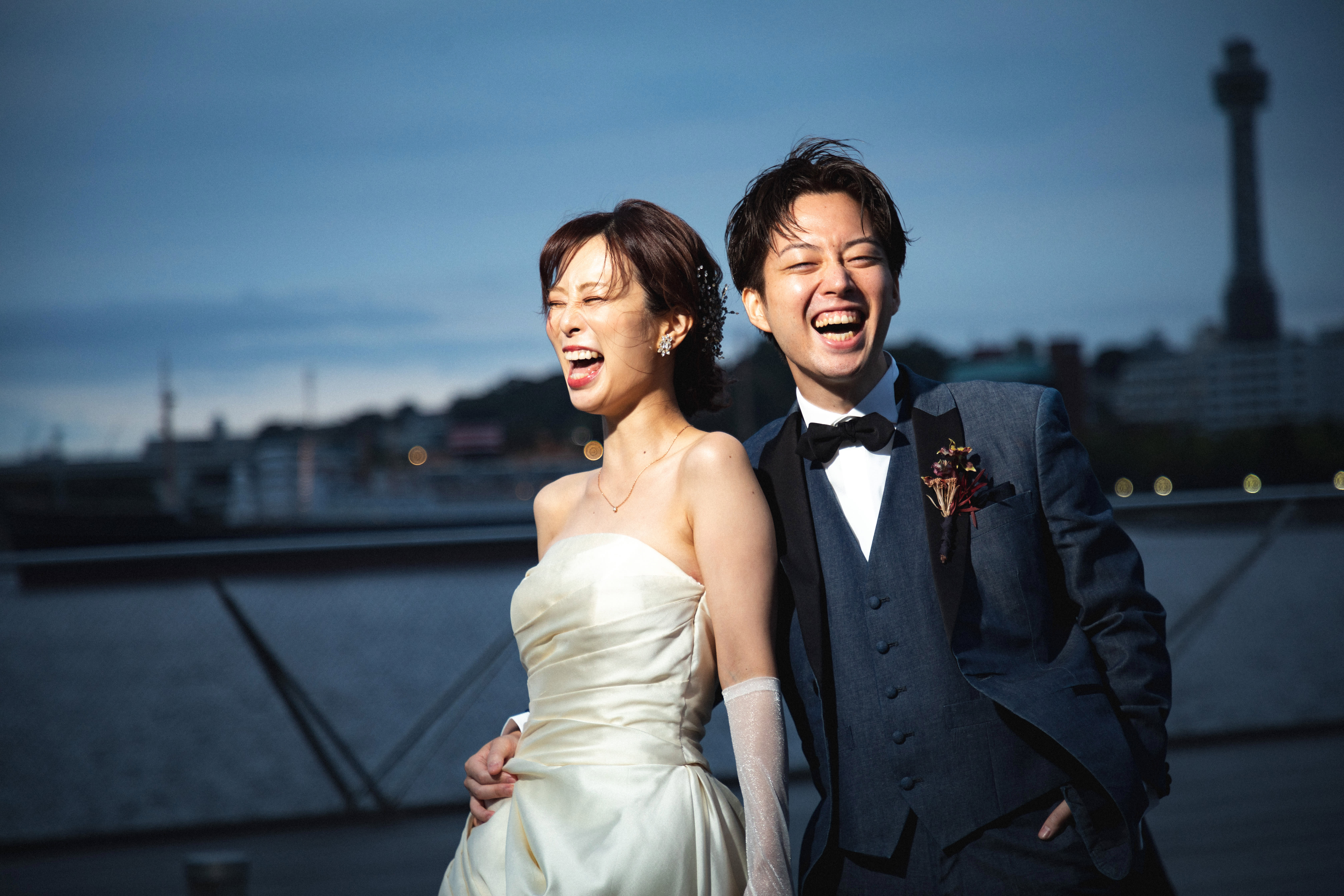 【横浜で記念日】汽笛が二人のスタートを祝う横浜のロケーションで美しい一枚を